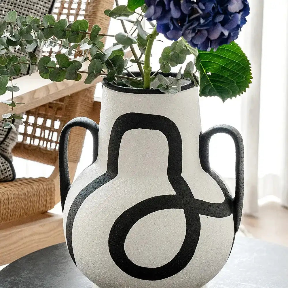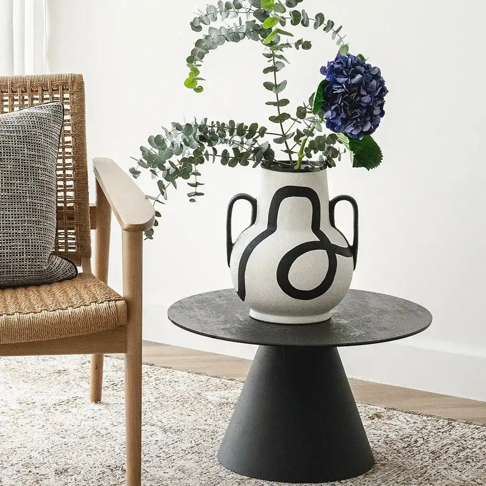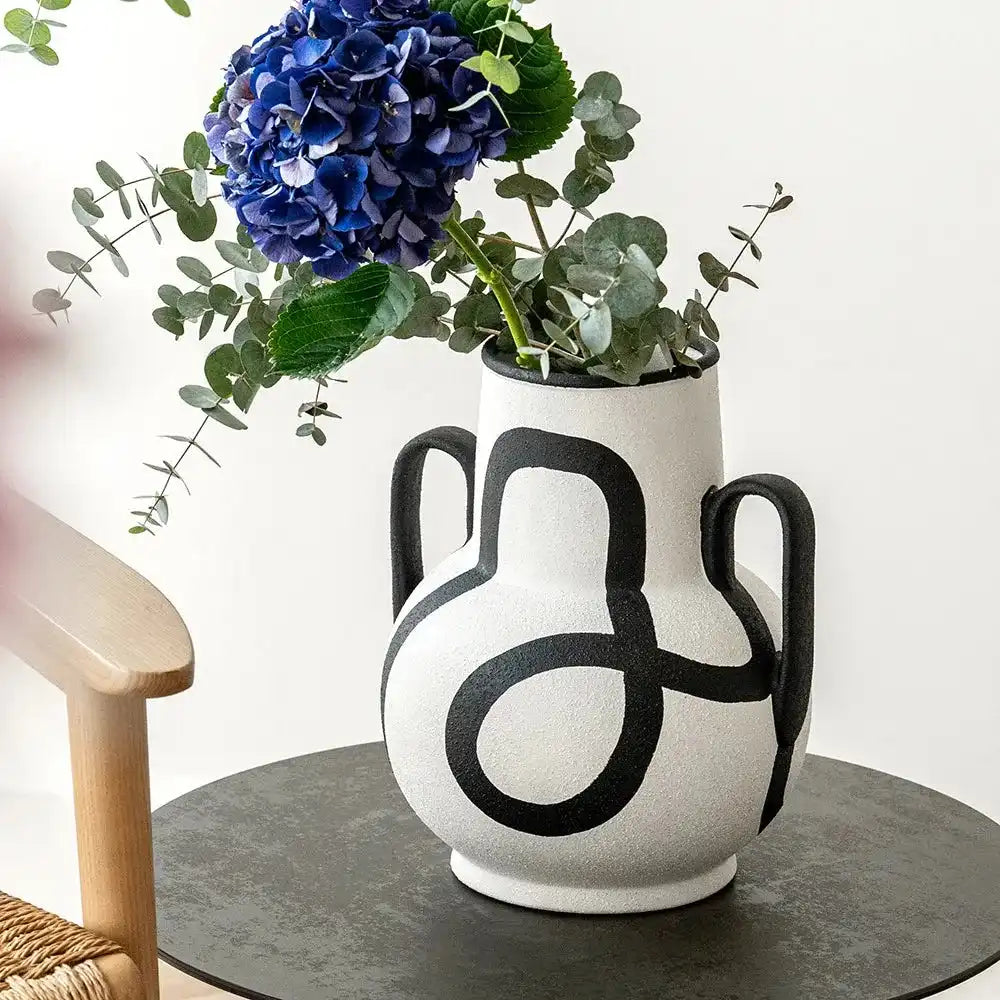 Ancient meets modern in this hand-painted ceramic vase. Our Evelina Arneson vase combines a classic amphora silhouette with a black and white pattern that's totally contemporary.
