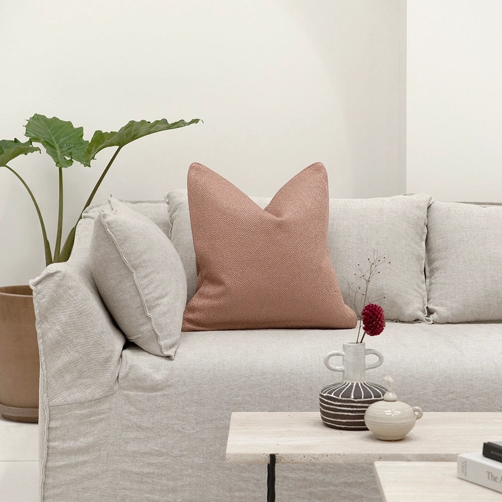 In a luxe linen mix, this plain pink cushion lets the texture do the talking. The blush pink cushion is finished with self piping and will add a tactile element to your décor.