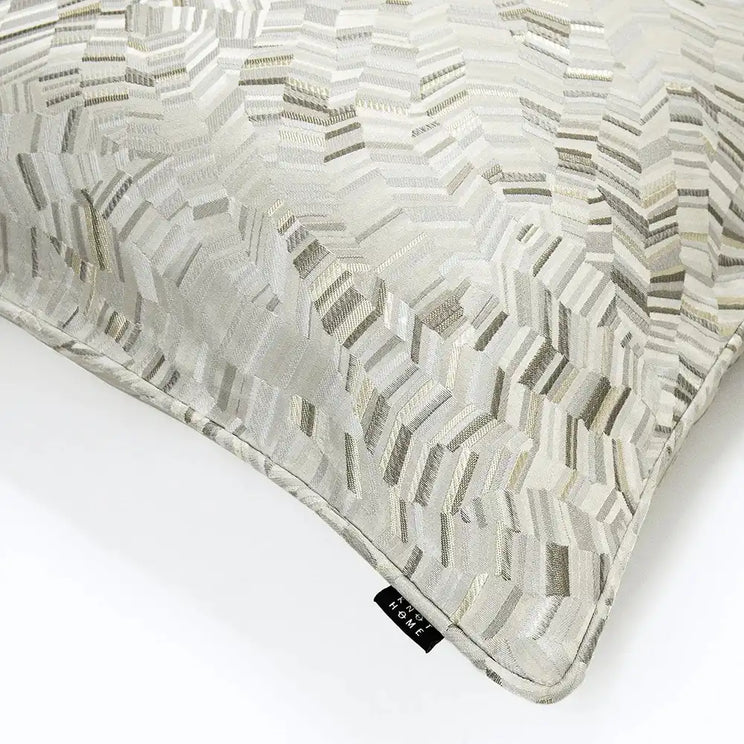 Muted tones meet op art design in this jacquard cushion, which puts a new twist on neutrals. Made from art silk for a premium feel, this semi-shiny cushion will add a luxe sheen to your living room.