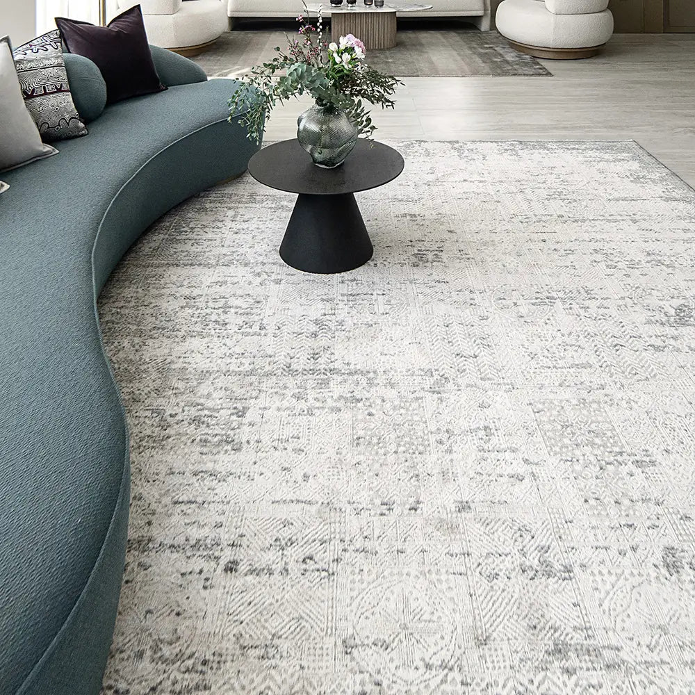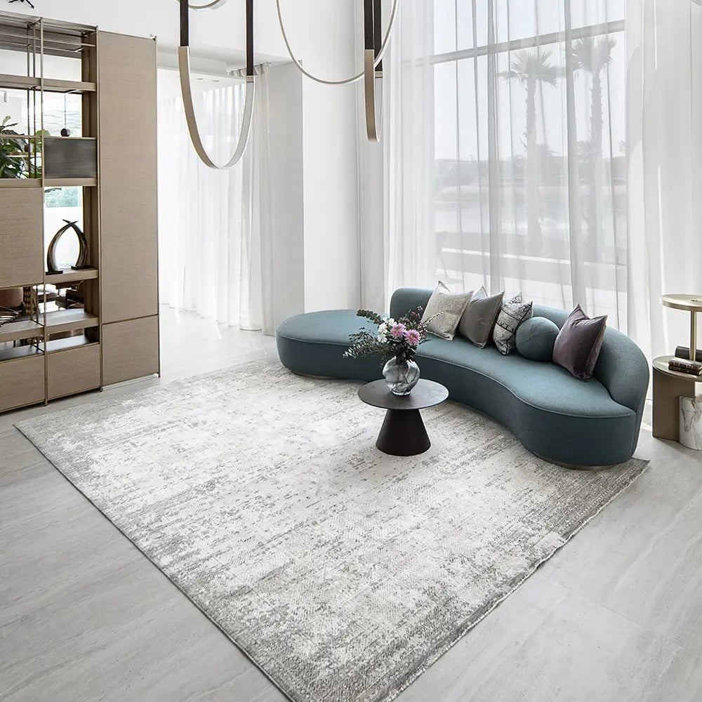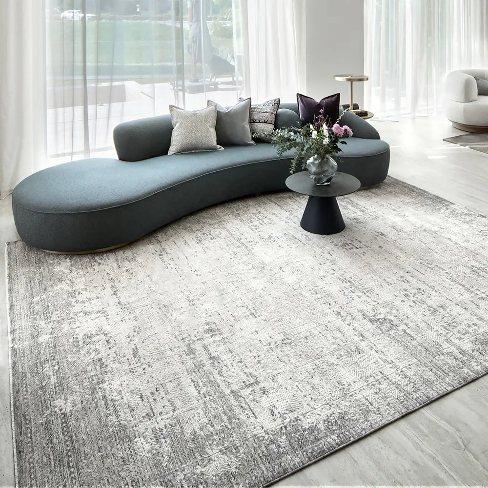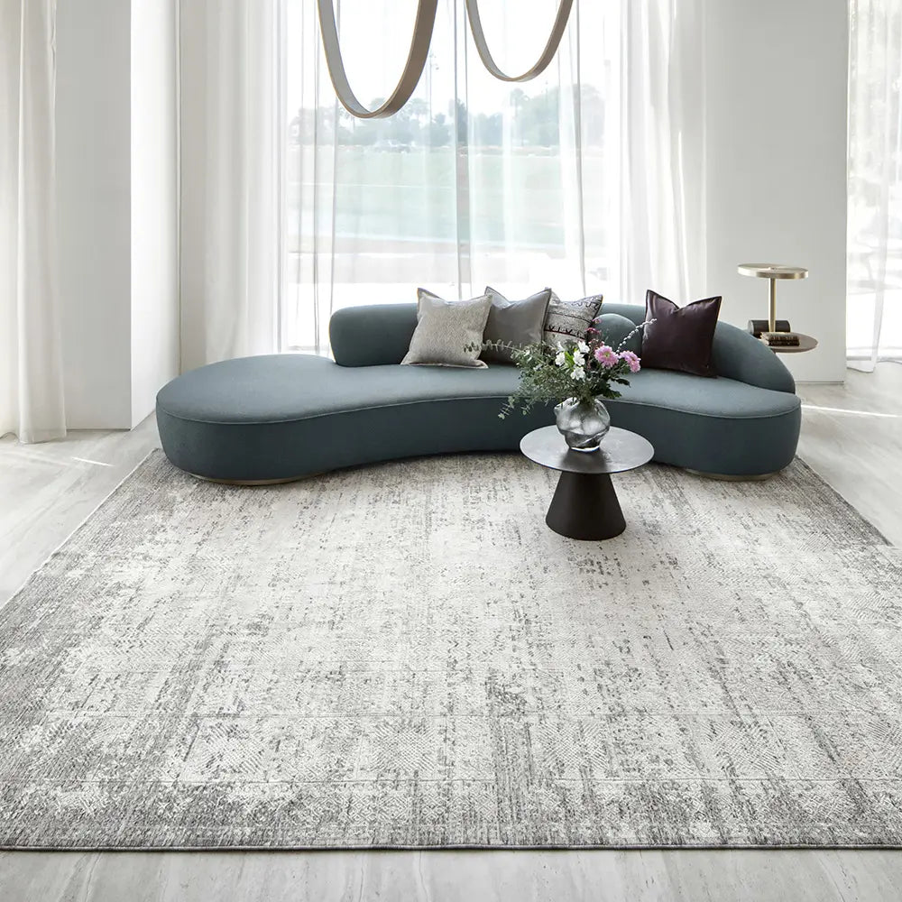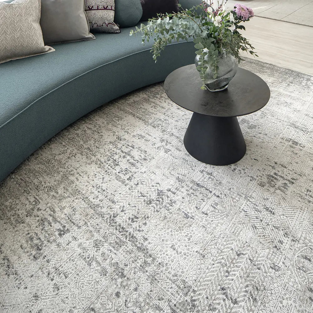This silver-grey carpet will complement any colour scheme