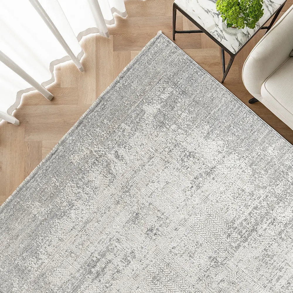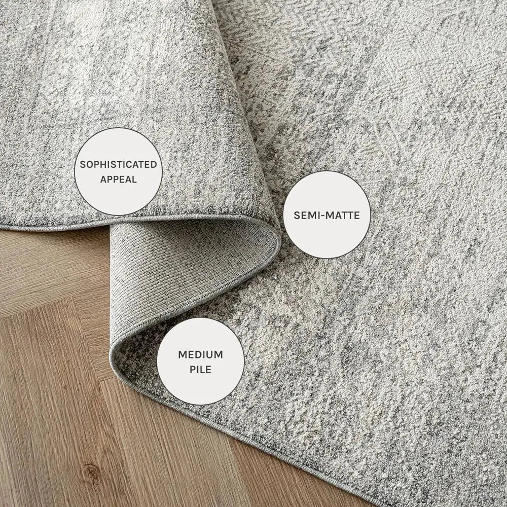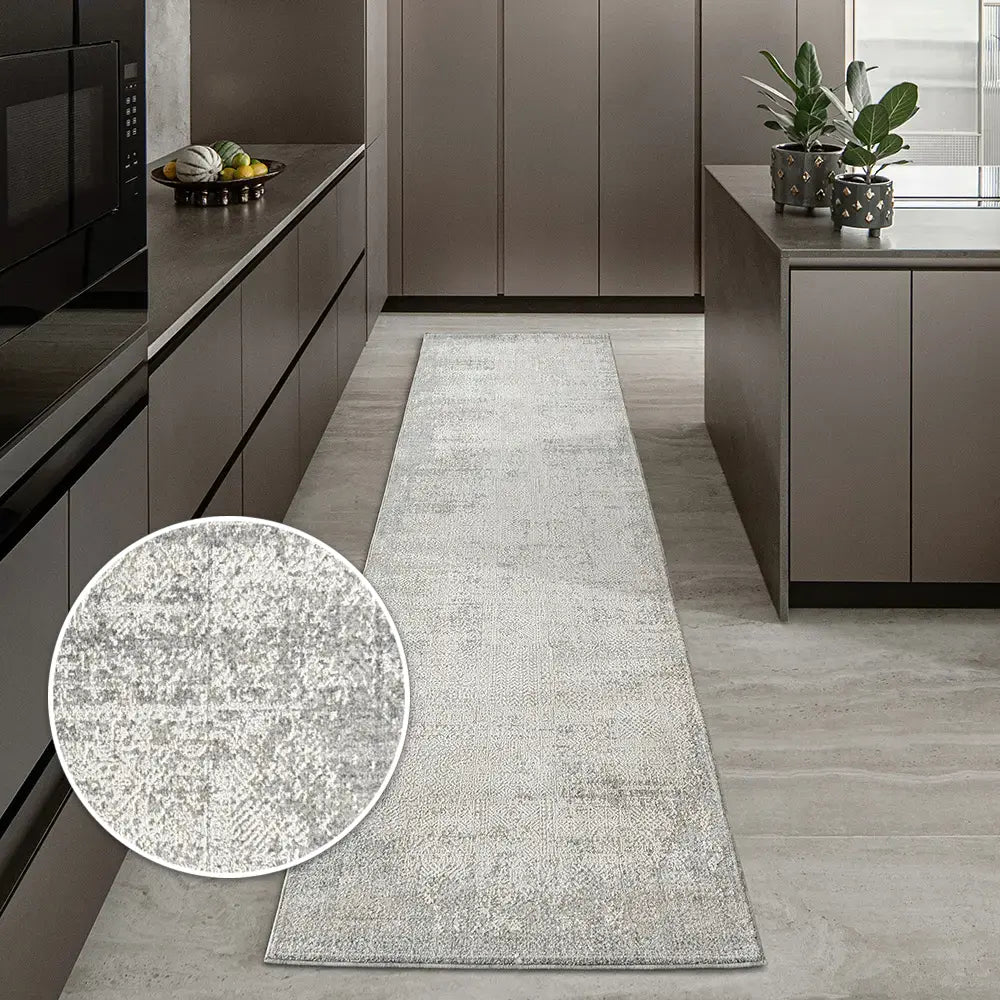 This vintage style carpet has been expertly distressed to create a neutral rug with antique charm. In a chic grey palette with fringing at each end, it's a timeless pick for your interior.