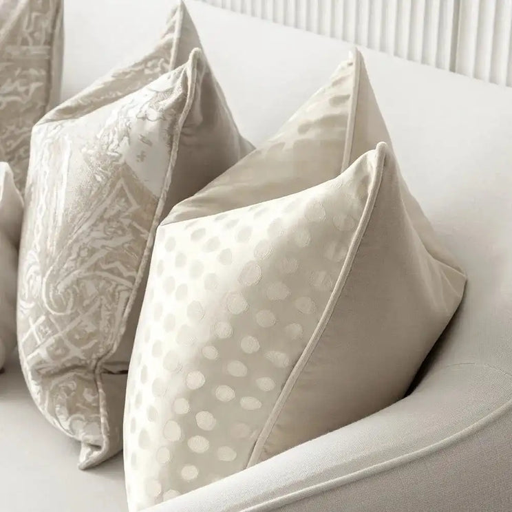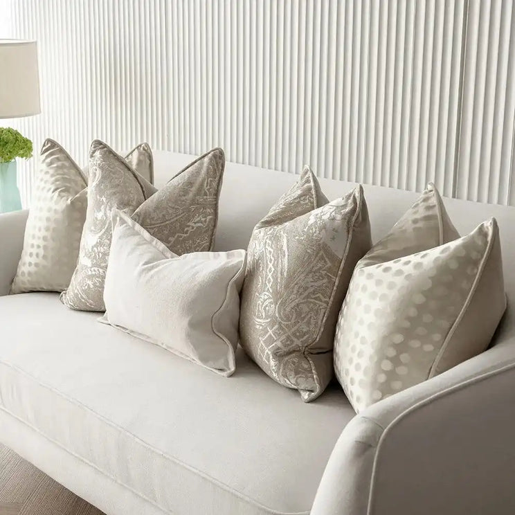 Design: Two metallic dot cushions, two antique pattern cushions and a white accent cushion