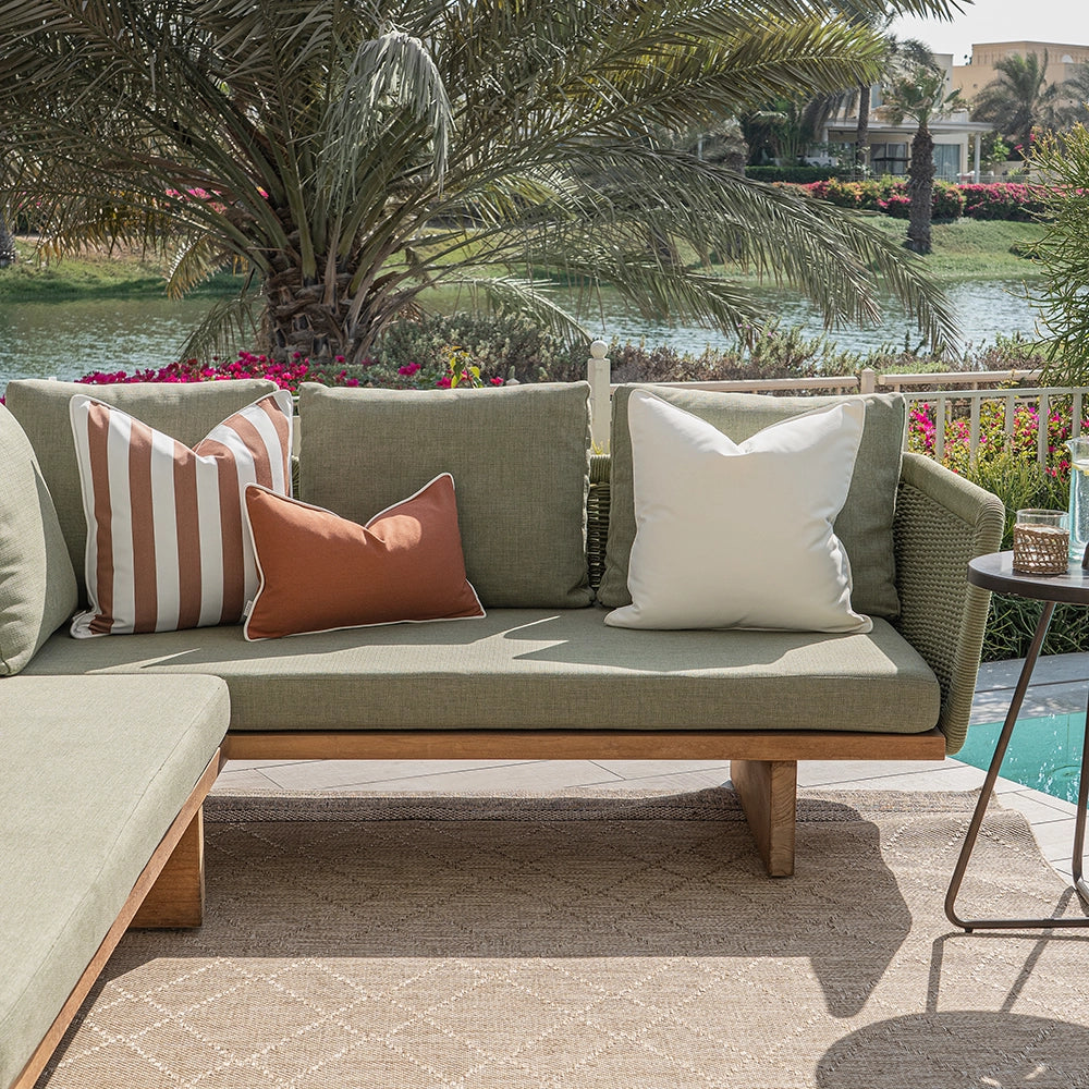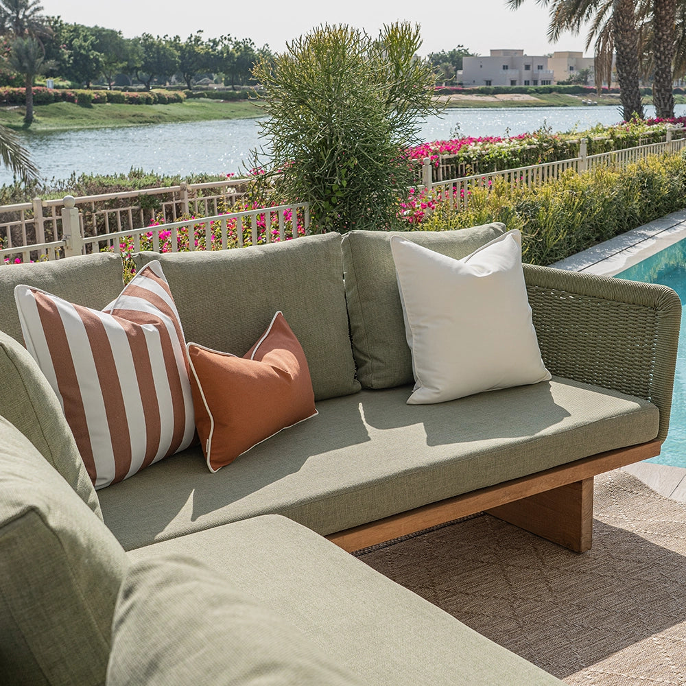 Weather-resistant, fibre-filled cushions for comfort that elevates any outdoor space