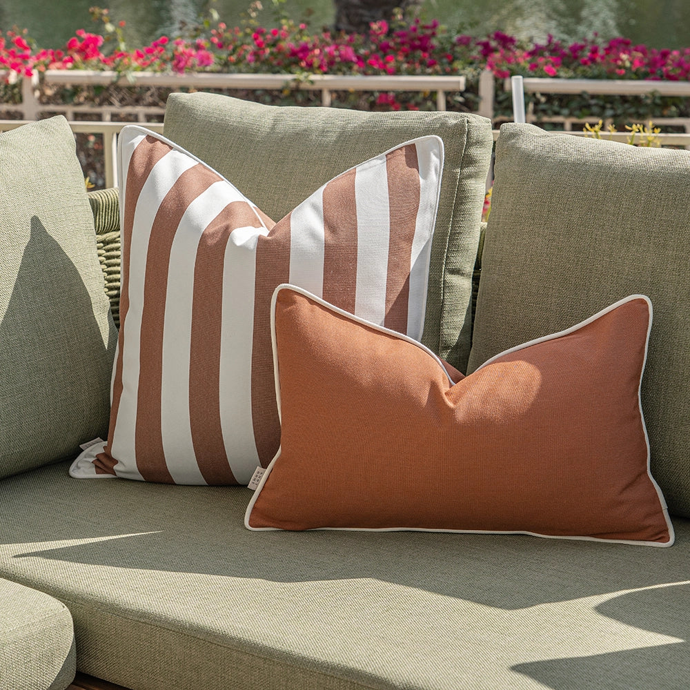 Turn your patio into a style statement with this three-piece cushion set. The bundle includes one plain cushion, one bold striped design, and a rust accent cushion for a pop of colour.