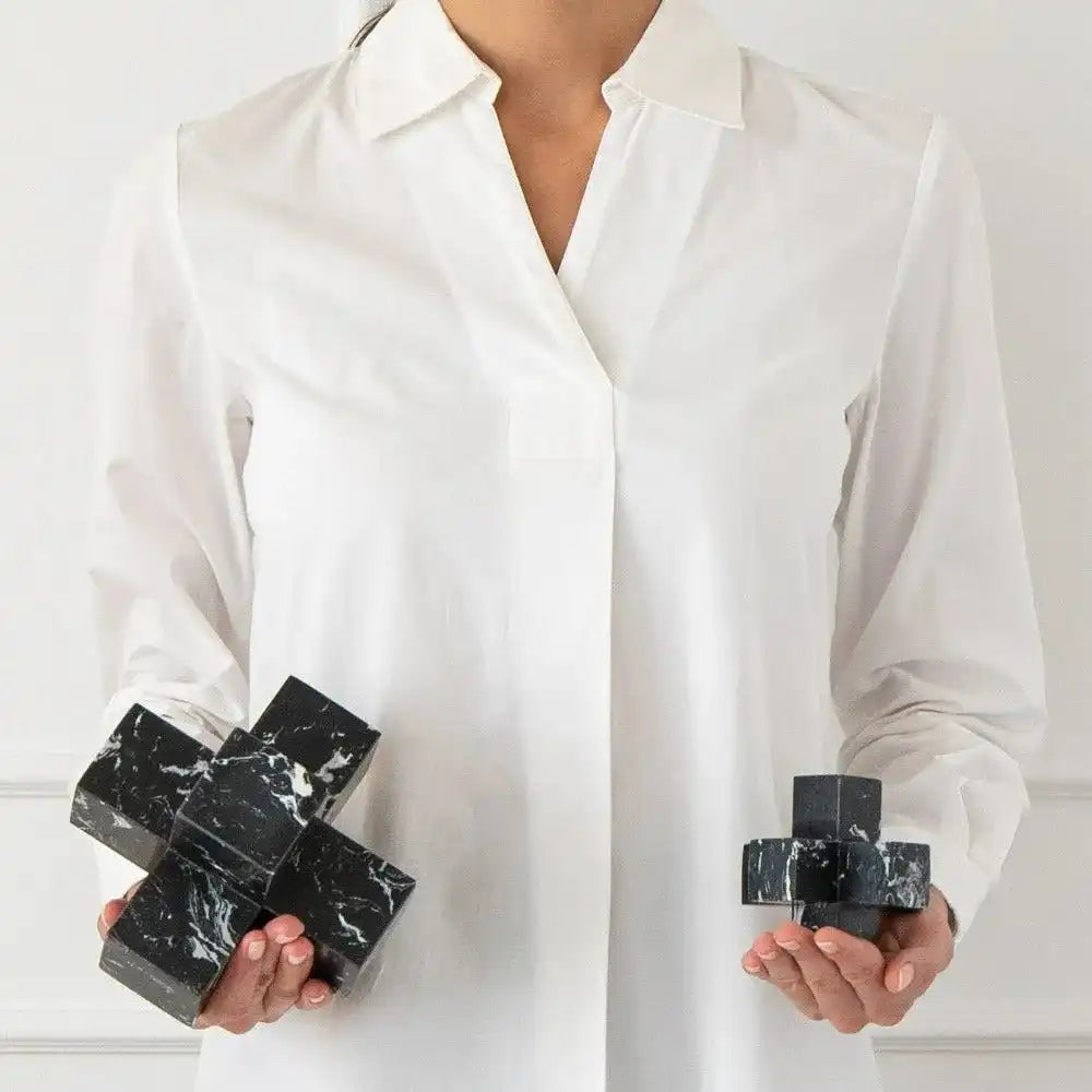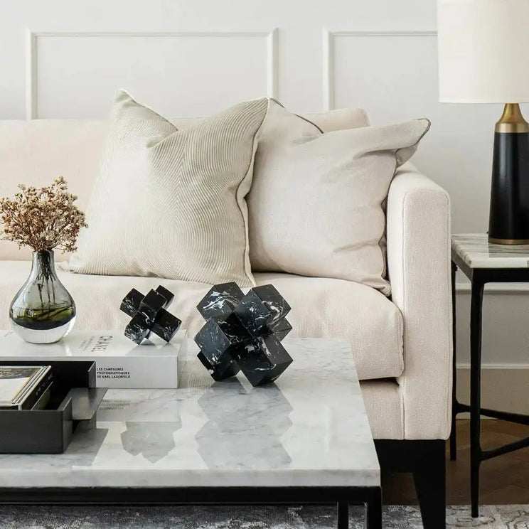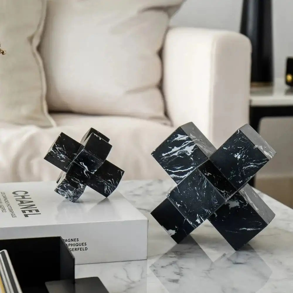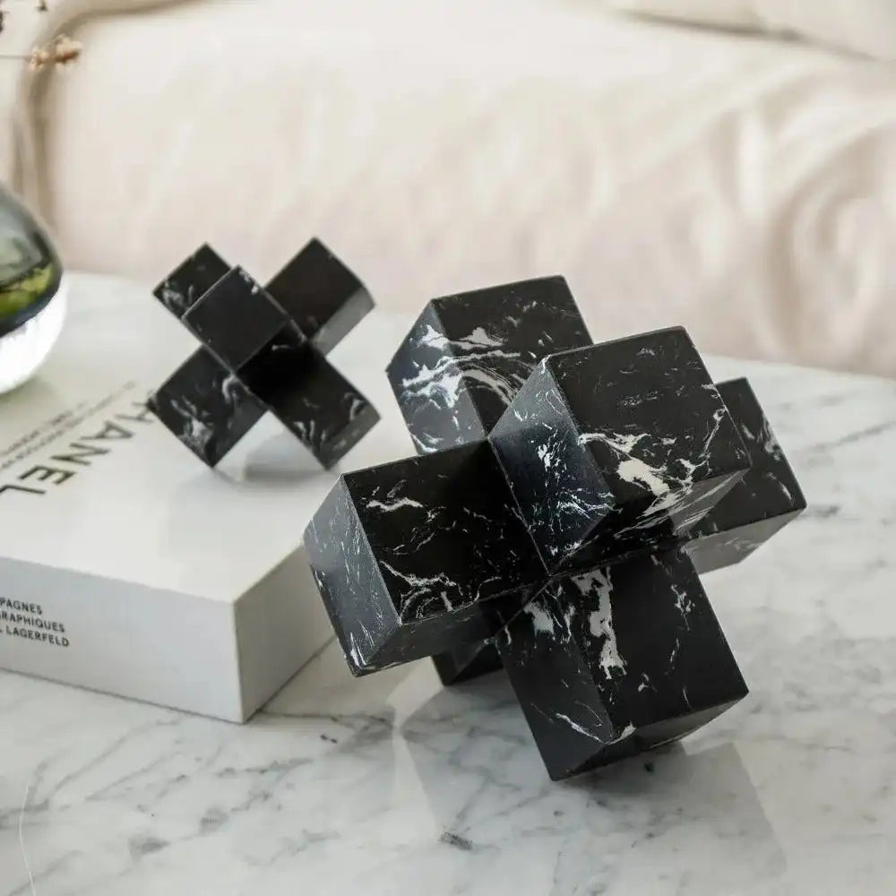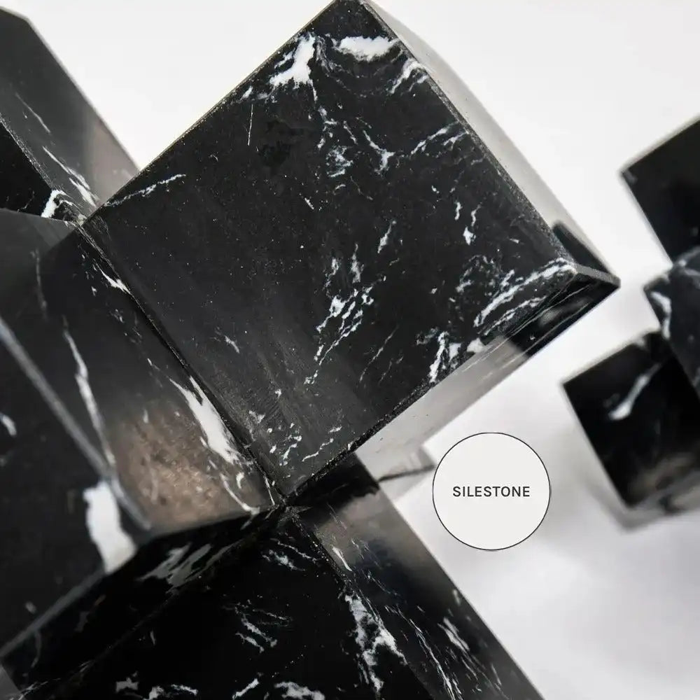 In silestone for a natural feel, this sculpture set includes two paperweights with a modern multi-cube design to make an eye-catching addition to your living room or office.