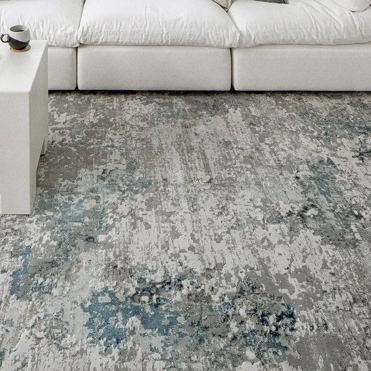 This textured carpet has a distressed abstract pattern to give it a beautiful vintage aesthetic.