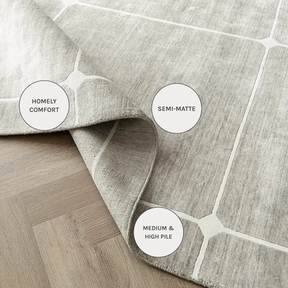 A mix of art silk and combed wool gives this carpet a luxe sheen.