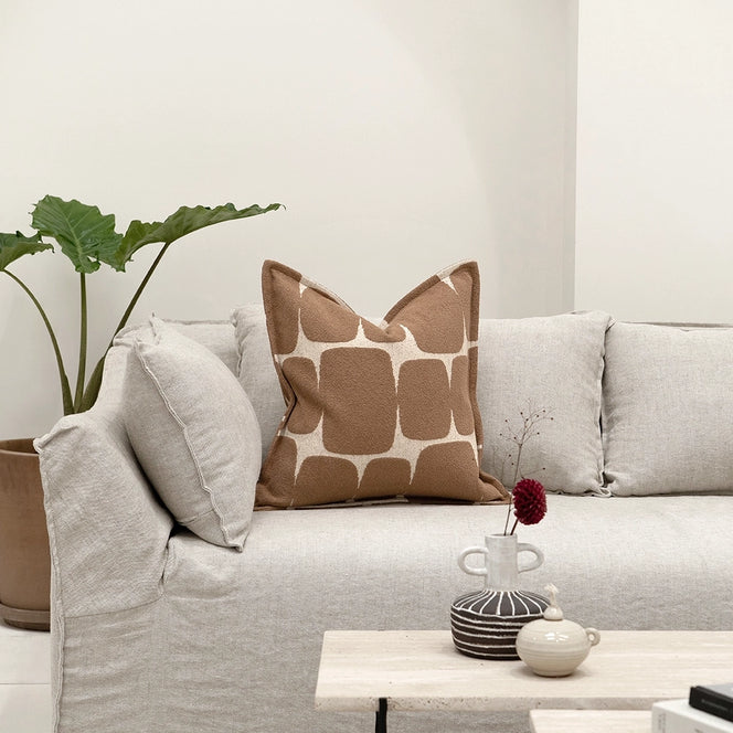Animal print but make it modern: this ivory and brown cushion features a stylised giraffe pattern to add a contemporary twist to your décor. It's made from cotton and linen for an organic feel.