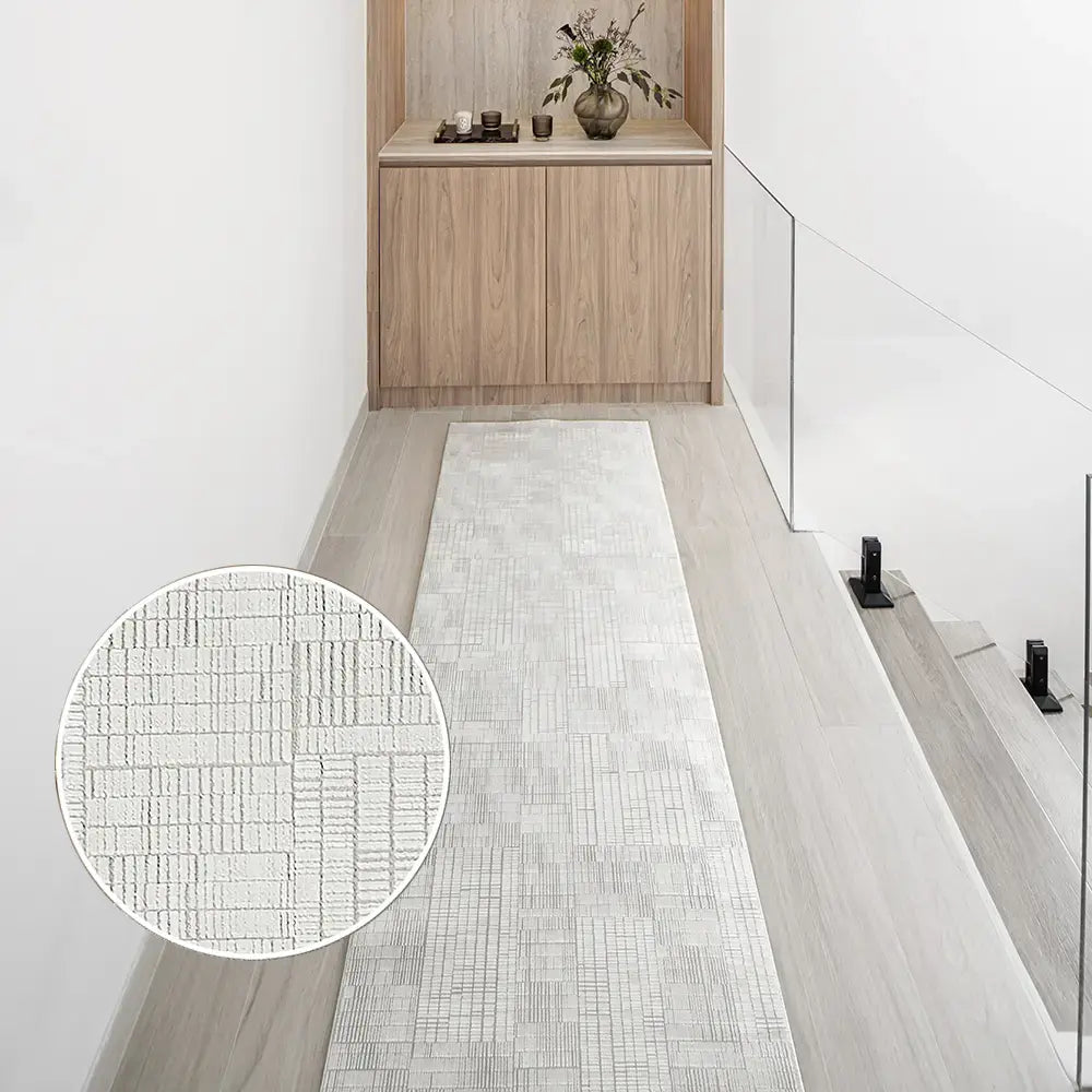 In ivory and pale grey, our Laino Ashton carpet is a versatile choice for any style of interior. The contemporary carpet combines an irregular block design with a silky texture to soften the effect.