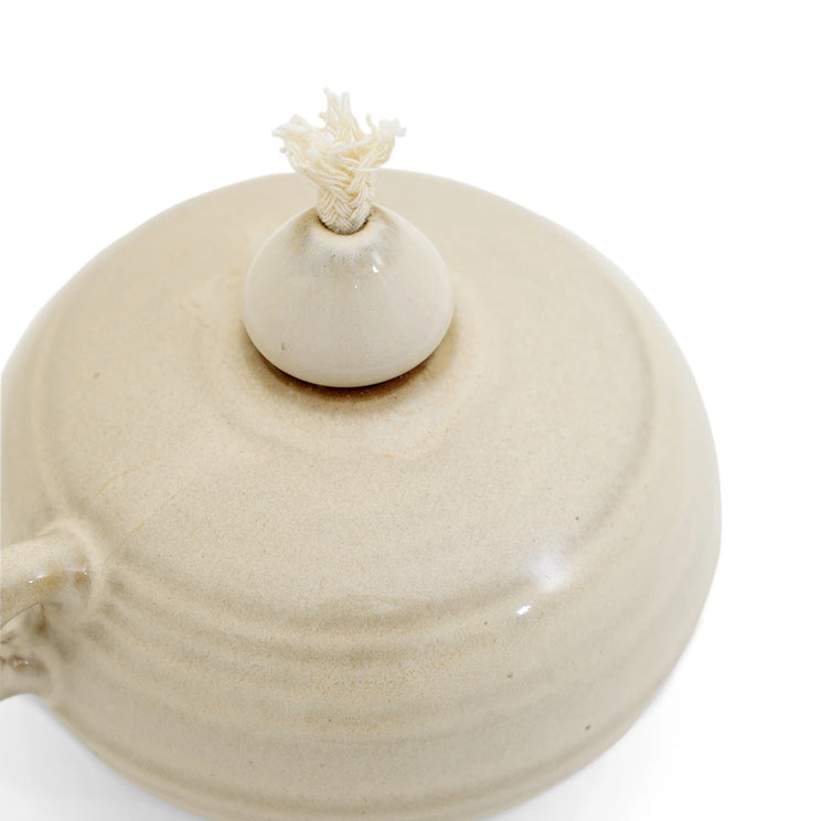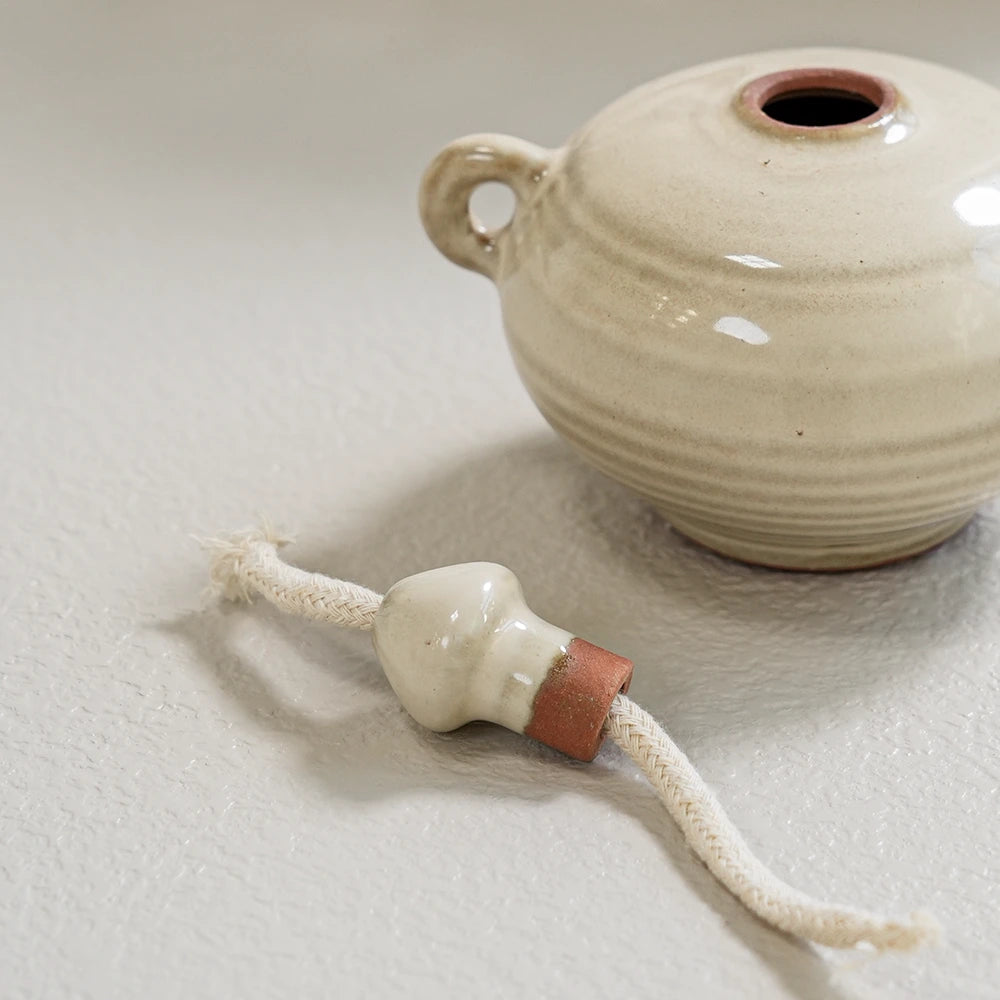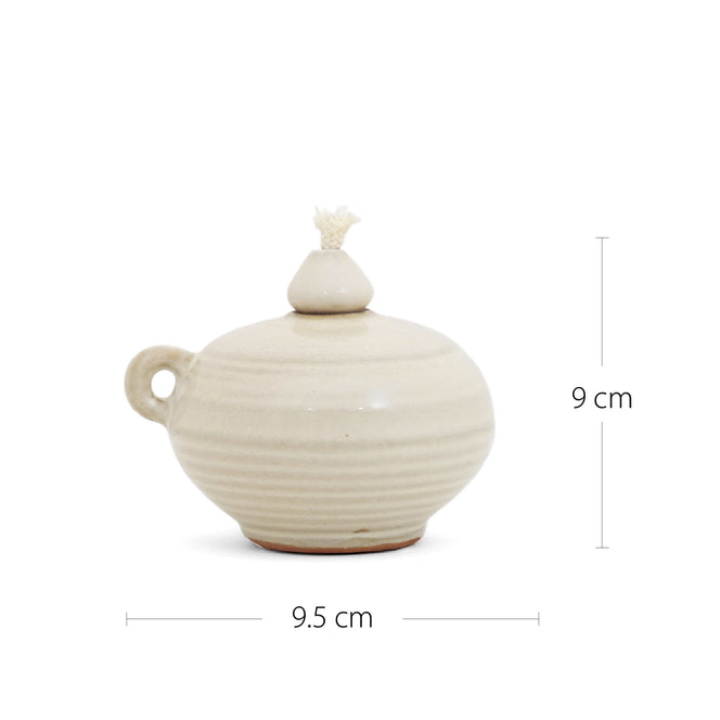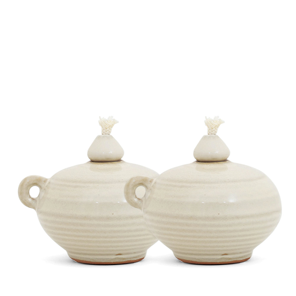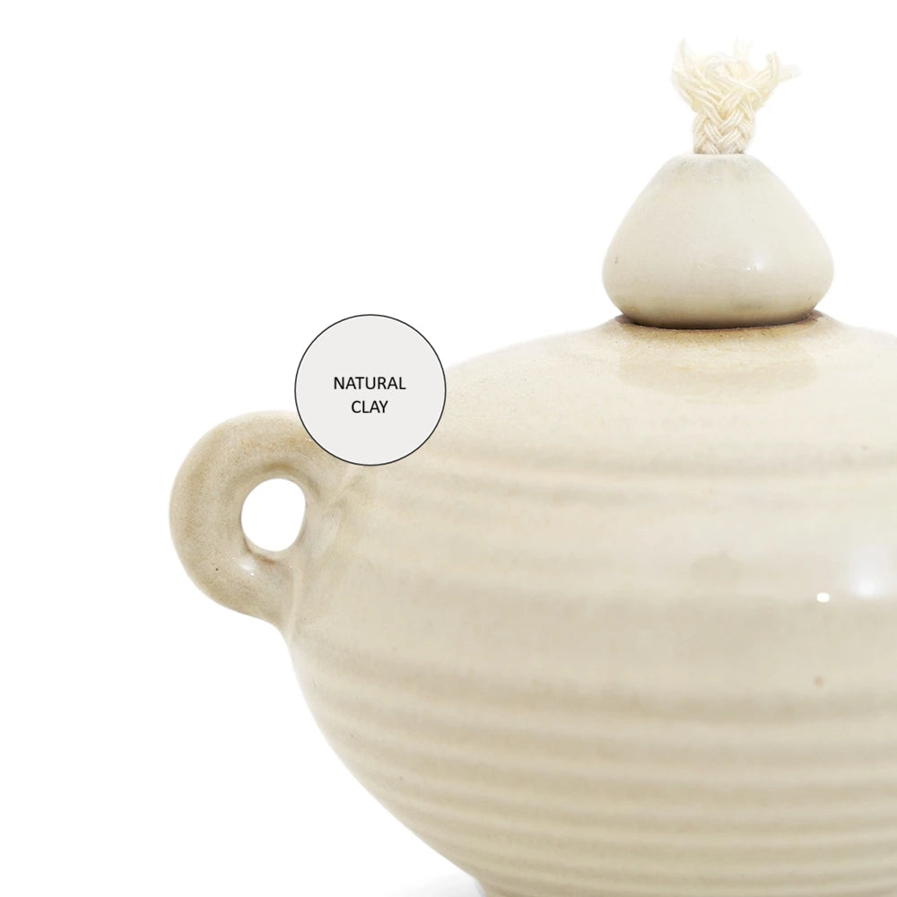 Introduce quiet luxury to your living room with these oil lamps in soft ivory with terracotta accents. Made from natural clay with a smooth finish, these oil lamps will cast a warm glow over your space.