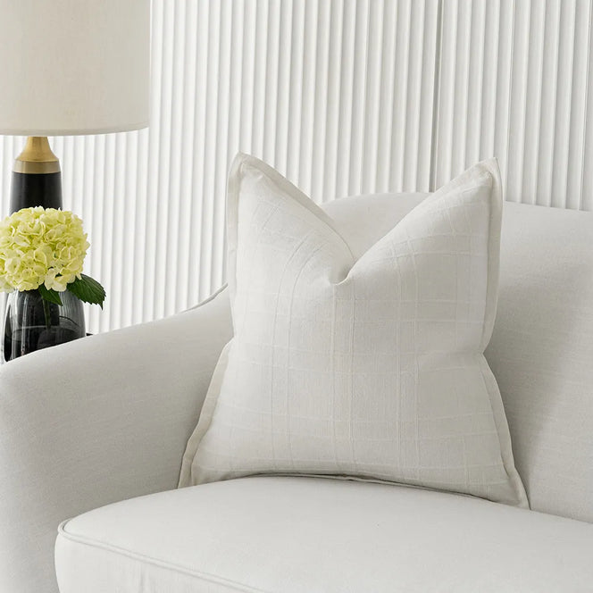 In natural fibres, our Lenora Bianca cushion will add a layer of understated luxury to modern homes. This white linen cushion features a textured grid design all over for a contemporary feel.