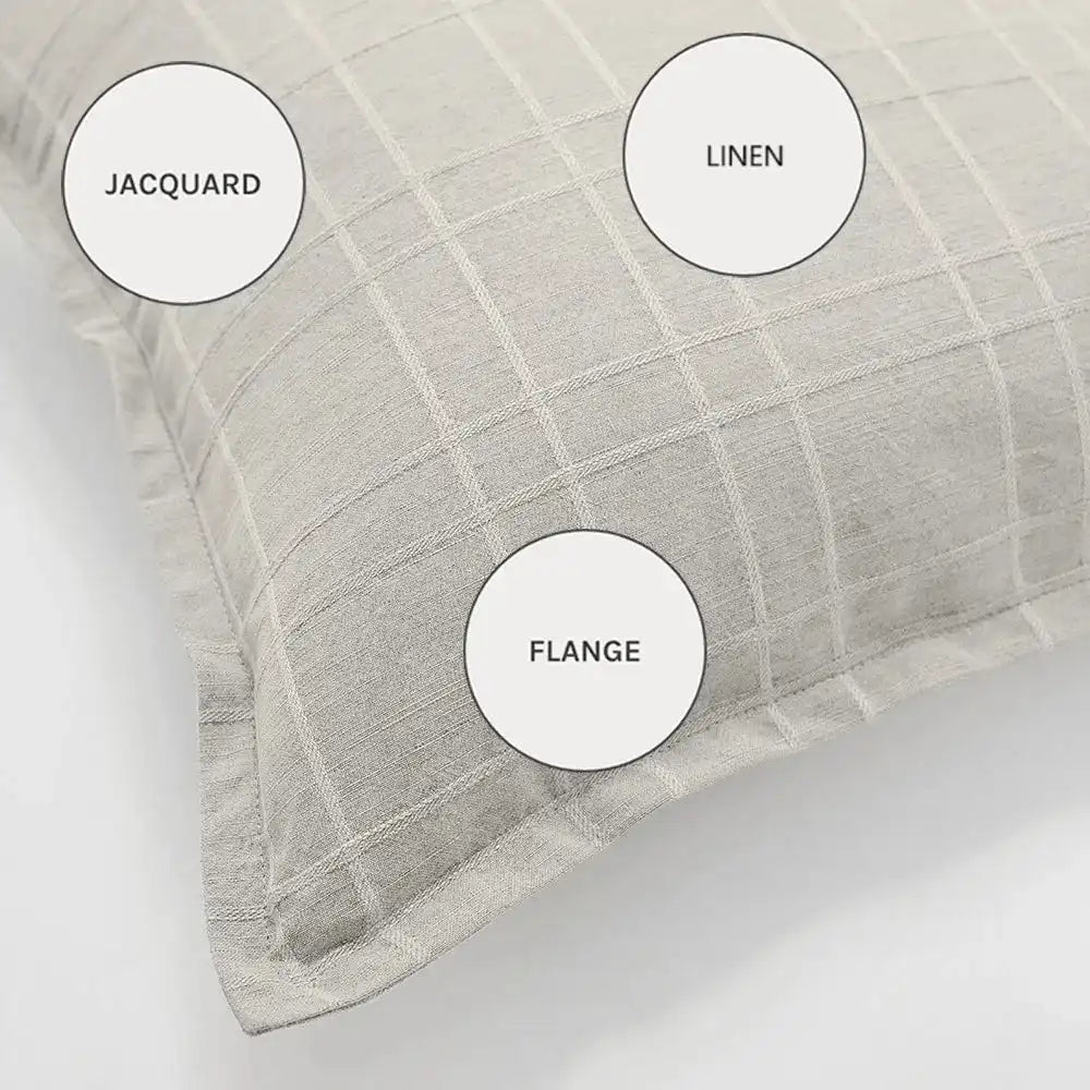 Modern design meets natural fibres in this grey cushion. This chic linen cushion comes in a subtle shade of dove grey, with paler grey stitching creating a textured grid pattern all over.