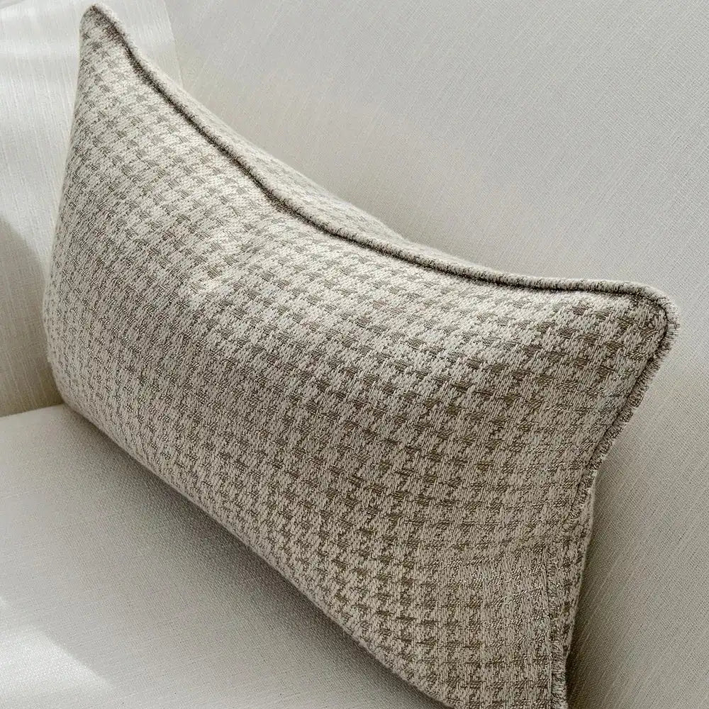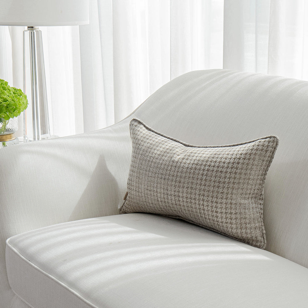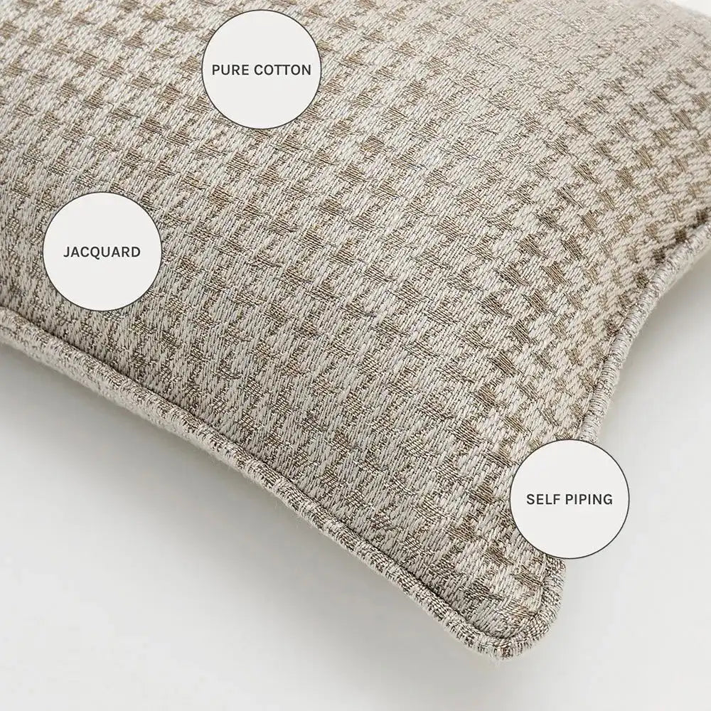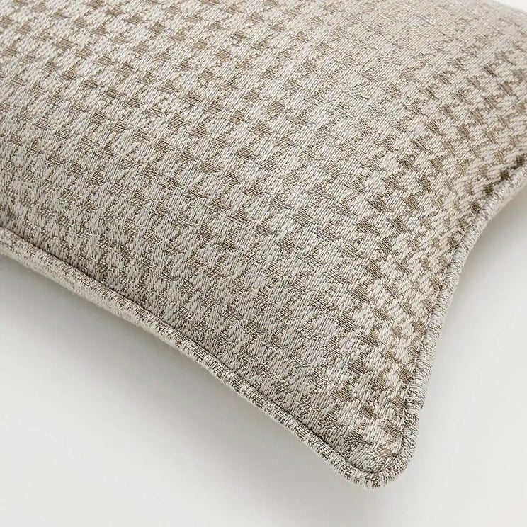 With a dogtooth check pattern all over, this taupe cushion combines traditional checks with modern minimalism to make a versatile choice for any interior.