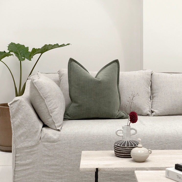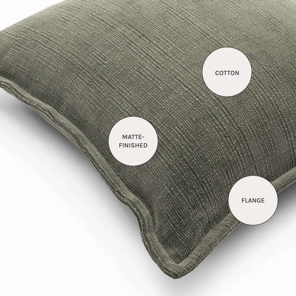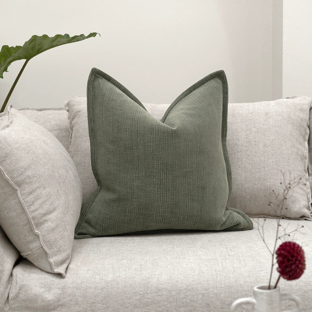 Elevate your living room with this elegant plain cushion in a muted shade of jade green. Made from pure cotton, the green cushion will add a natural, organic feel to your cushion arrangement.