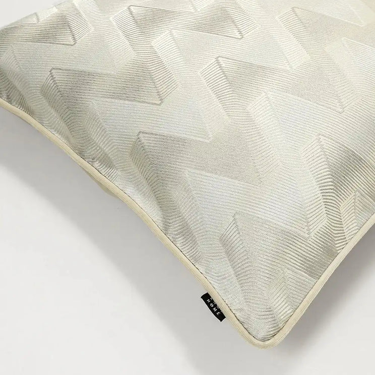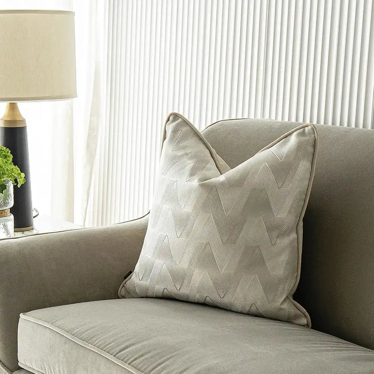 Our Maisie River cushion features a modern soundwave pattern that pulses with energy. This white and silver cushion has a smooth, semi-shiny texture and a stylised heartbeat design on the front.