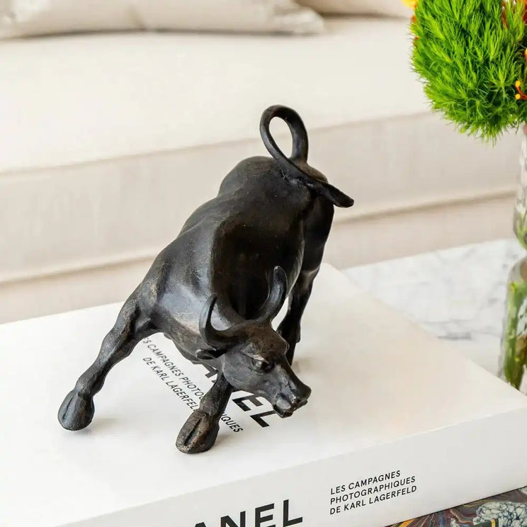 This bronze sculpture will bring life and energy to your décor. It features a dark bronze bull that's full of movement to make a statement in your living room or home office.