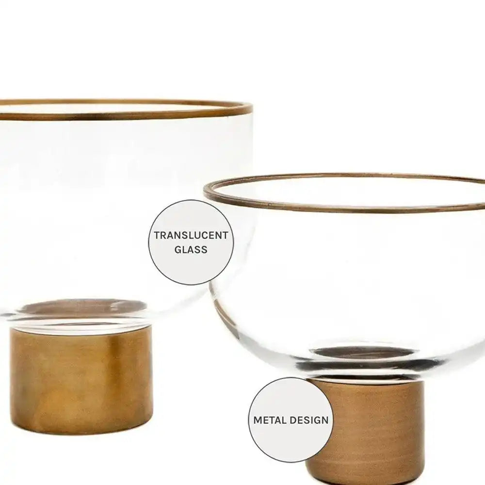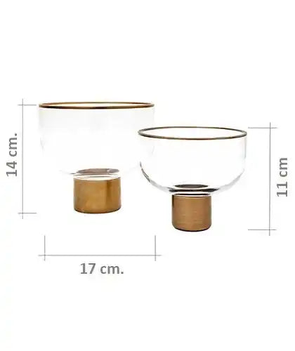 Design: Two clear glass bowls with brass rim on a brass stand