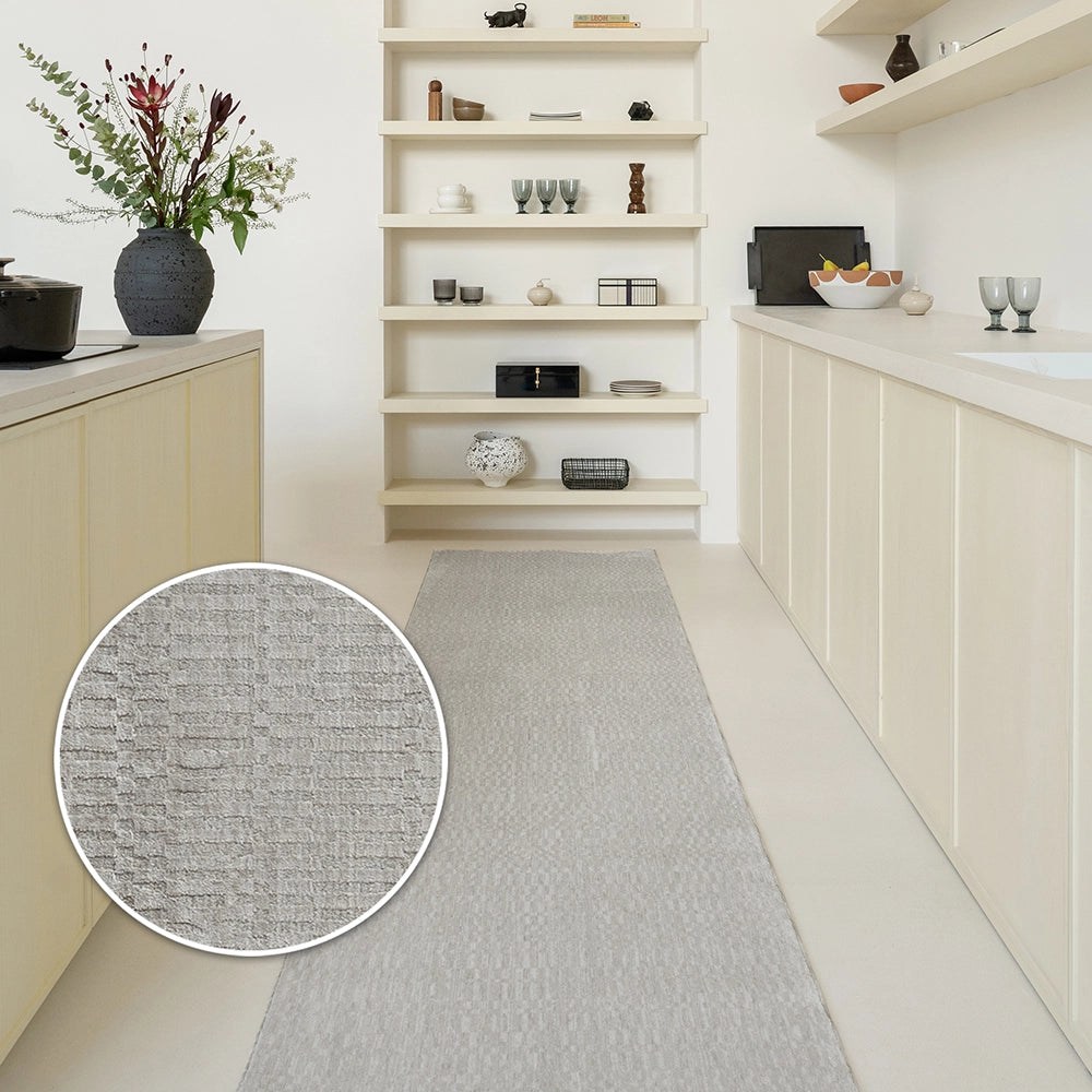This neutral carpet serves up serious style for the modern home. Small rectangles all over give this beige carpet a wonderful texture, while large-scale criss-crossing lines add a modern twist.
