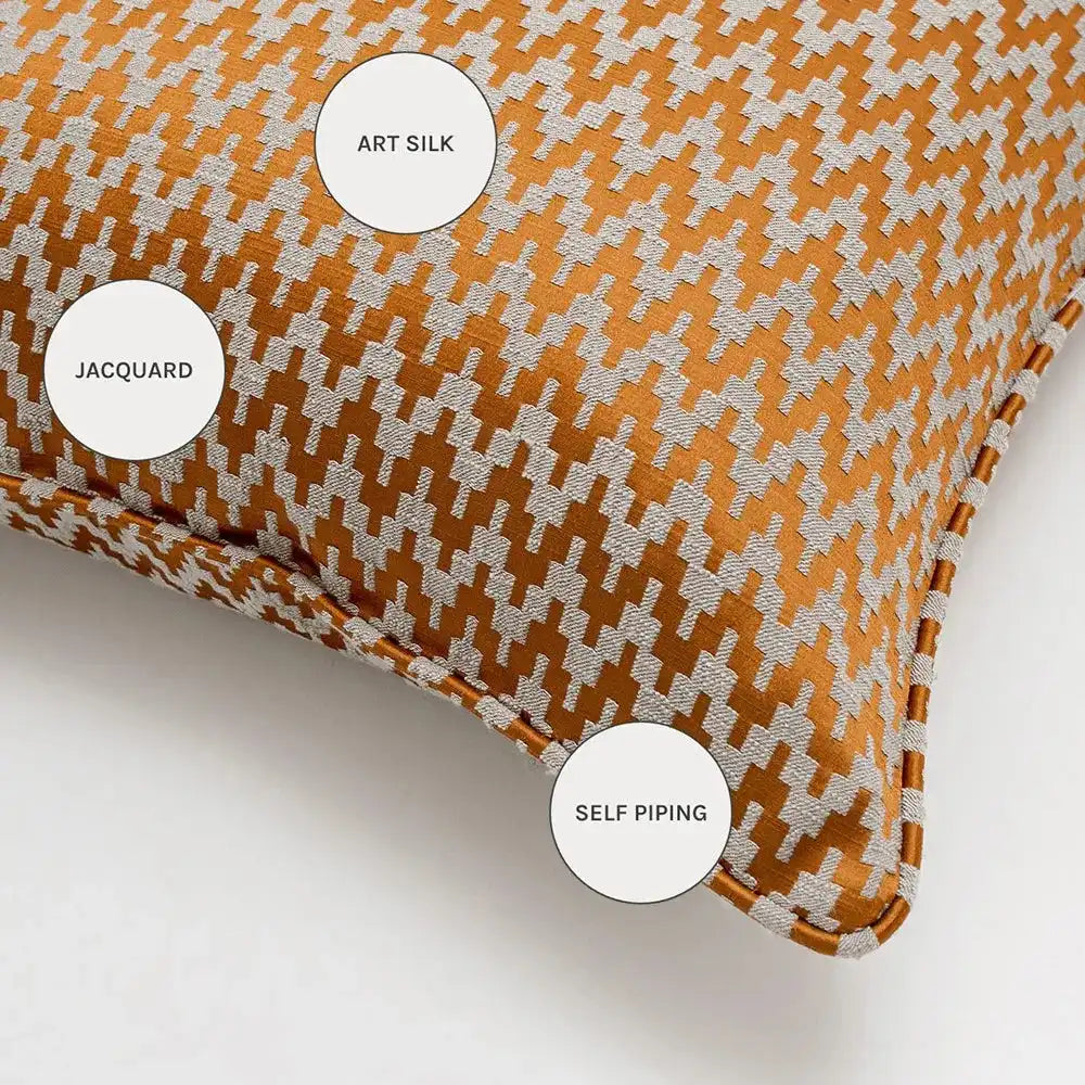 Make a statement with this orange cushion. The semi-shiny cushion features pixelated zigzags in orange and silver grey to create a modern pattern that will breathe new life into your living room.