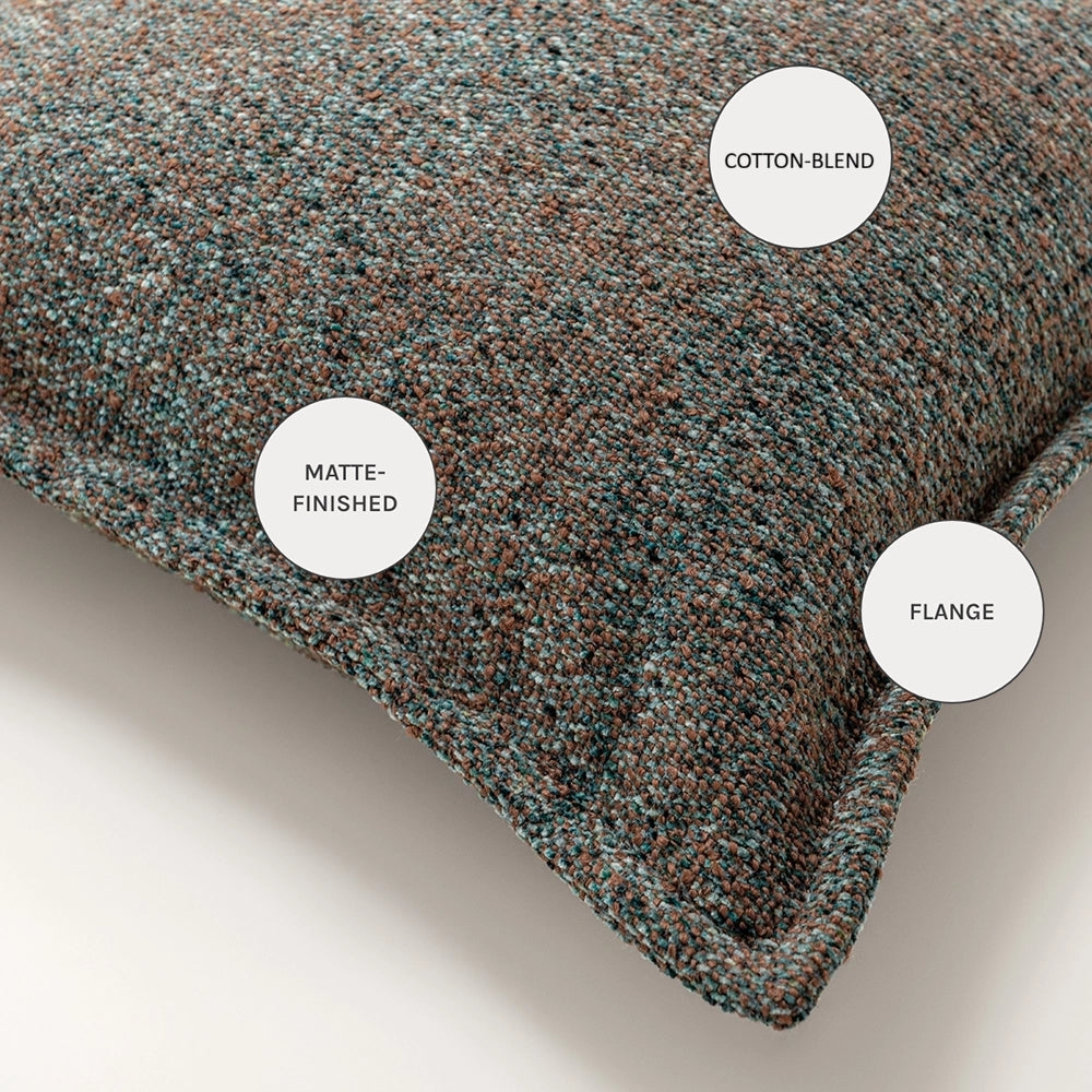 Shades of blue, rust and grey come together in a soft melange in this multicoloured cushion. With an understated flange trim, this blue cushion delivers plenty of texture for a luxury feel.