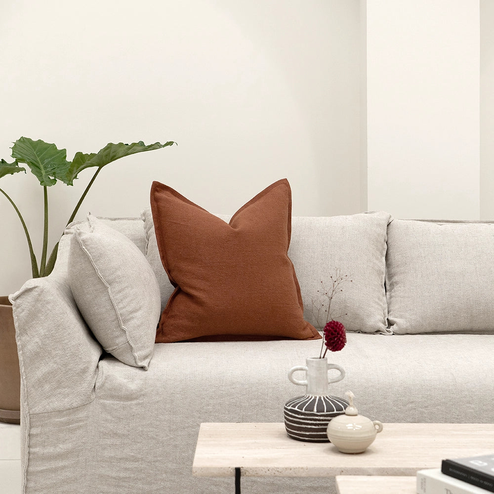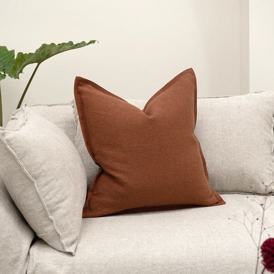 Bring the colours of the spice market to your home with this brick red cushion. The rust cushion is made from linen for a cool, comfortable feel all year round.