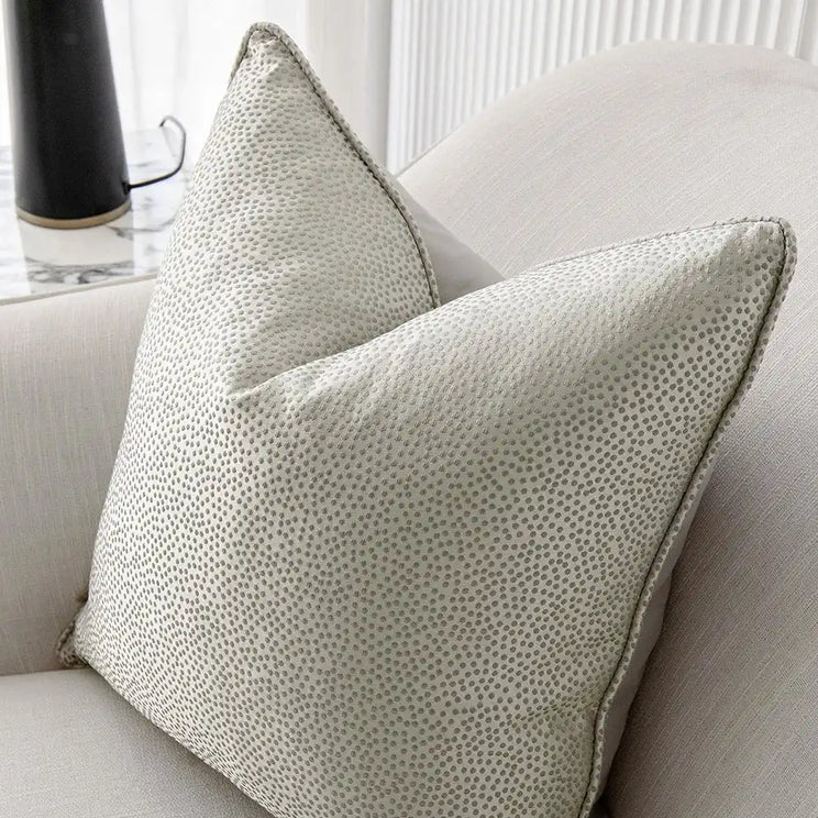 Design: Two black and grey jacquard cushions and two silver dot pattern cushions