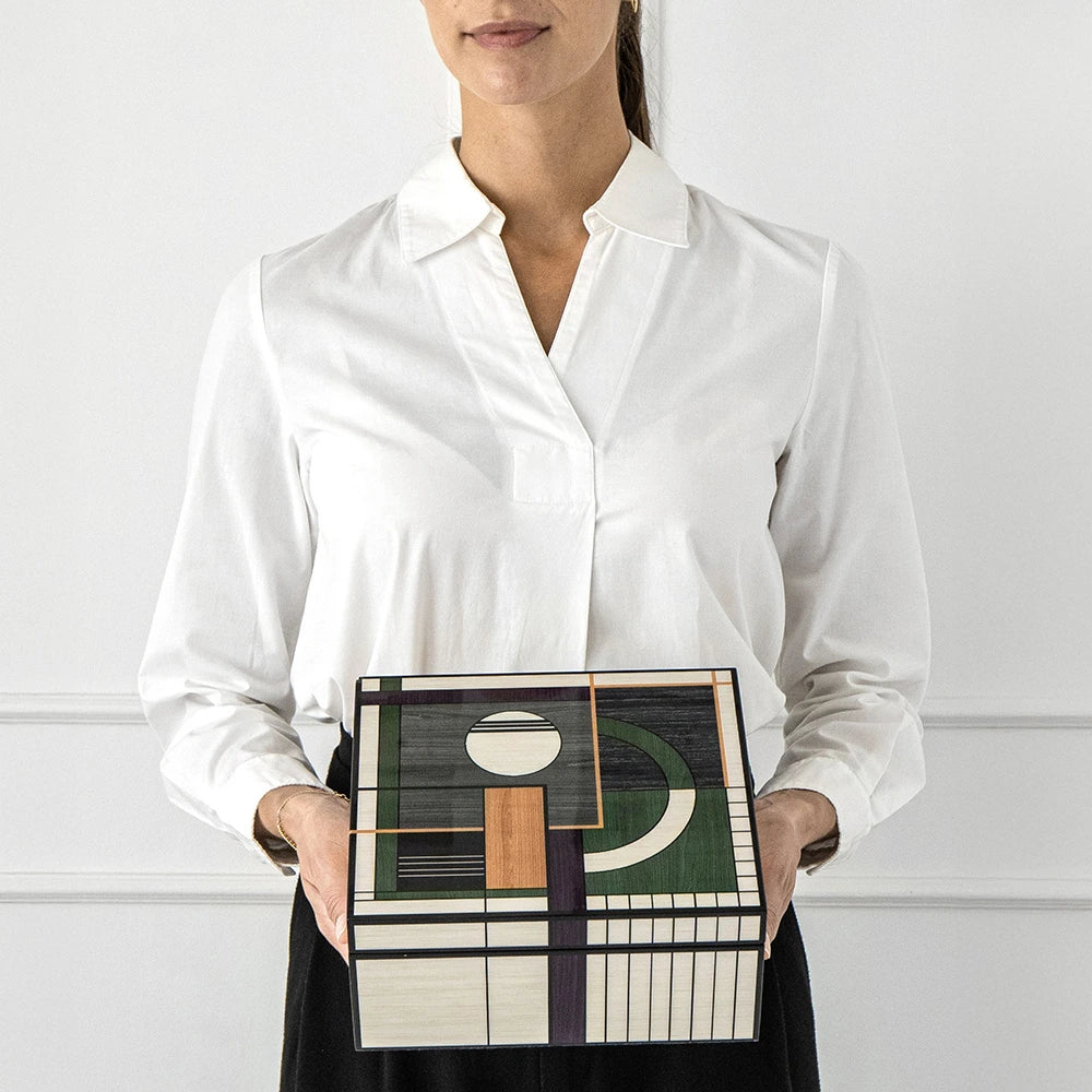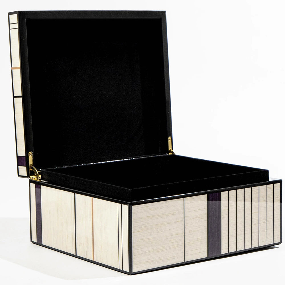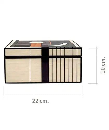 Design: Made from rich lacquered wood with a high gloss black shade, embellished with a colorful abstract pattern that gives it a dignified and prestigious personality.