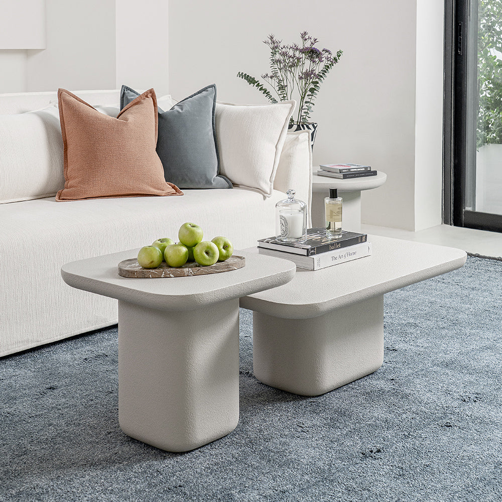 Soft Ivory Stone Modena Coffee Tables (Set of 2)