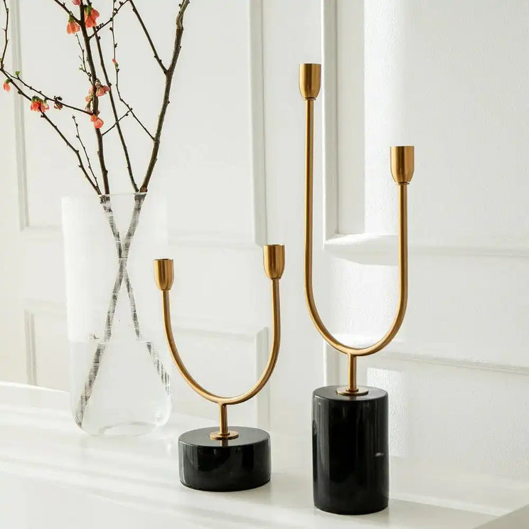 An elegant way to light your home, this bundle includes two U-shaped candleholders in different sizes. In brass and black marble, they'll create a sleek focal point, even when not in use.