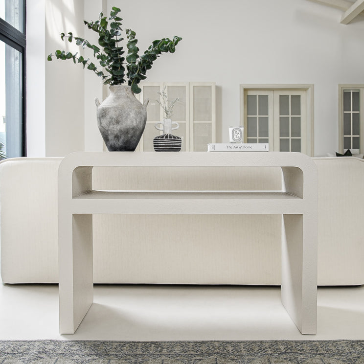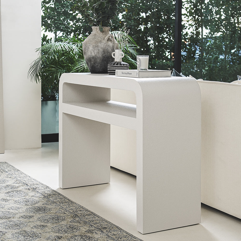 Your dream shelf display starts here. With its sculptural, architectural silhouette and subtle plaster-effect texture, this off white console table will elevate your hallway or living room with ease.