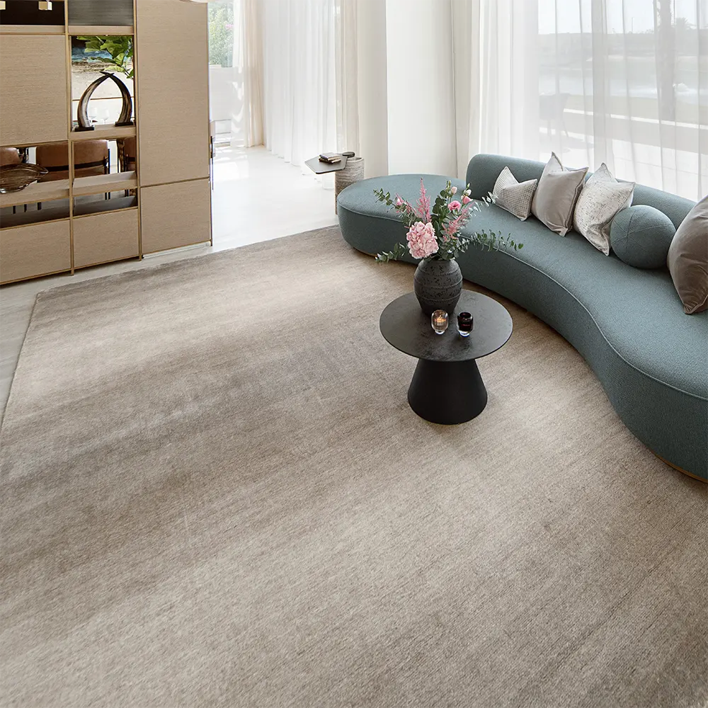 In a premium blend of wool and art silk, this beige and grey rug has an ombré effect to add depth to your interior.