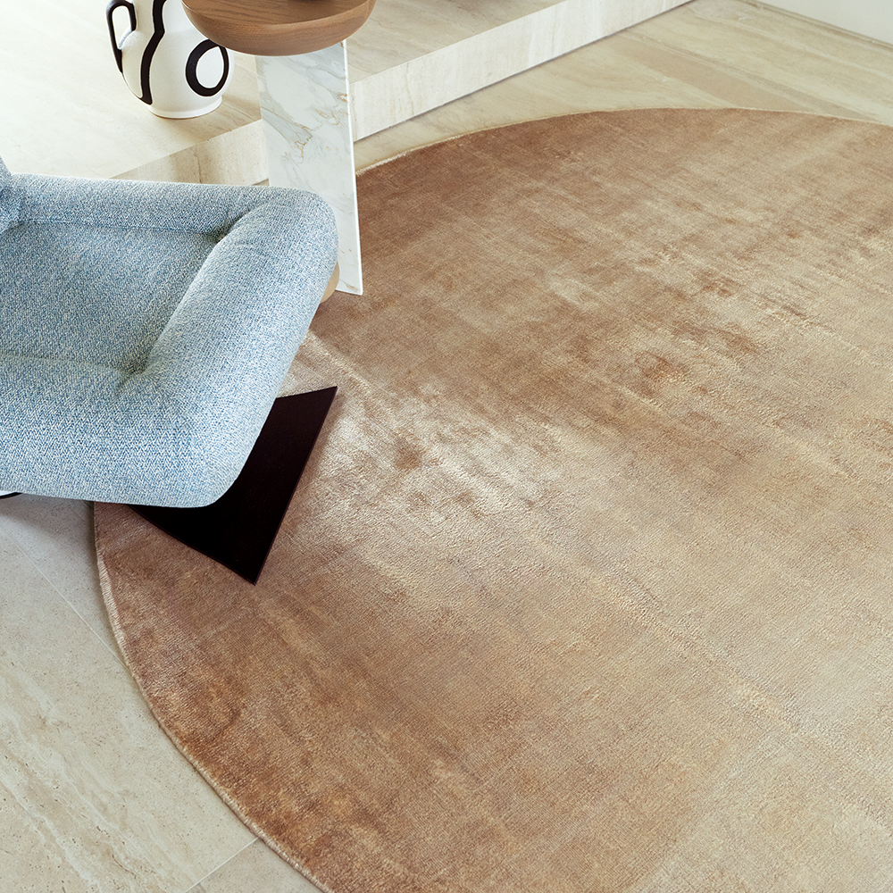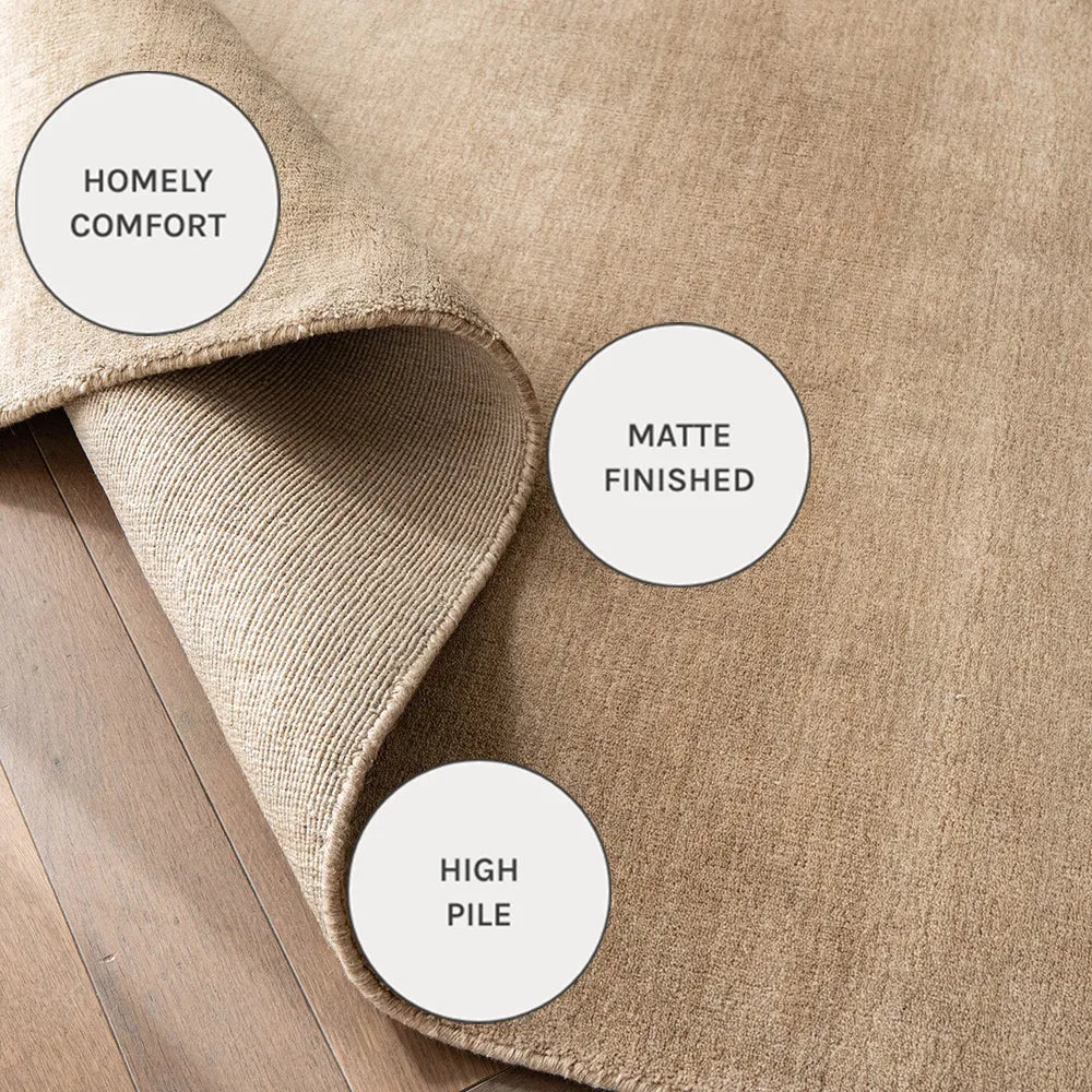 In shades of beige, this premium art silk and wool rug has a soft ombré effect to add richness to your living space.