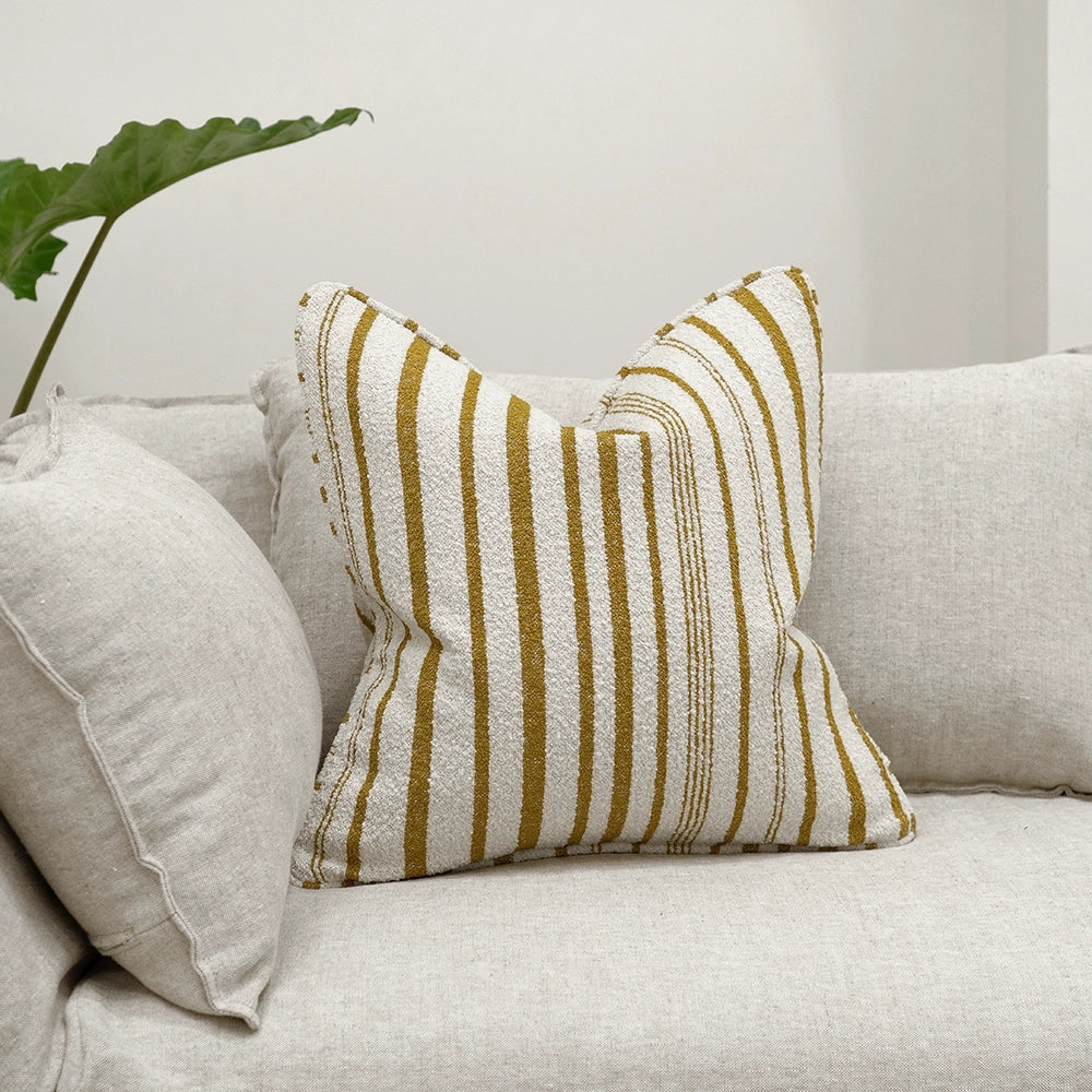 With a super soft feel and sophisticated colour palette, this striped cushion ticks every box. The cream and olive green cushion is a stylish and comfortable upgrade for your sofa.