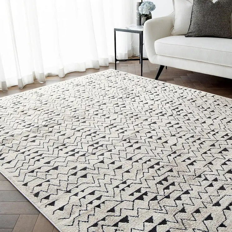 With a geometric pattern in versatile neutrals, this rug suits any style of décor.