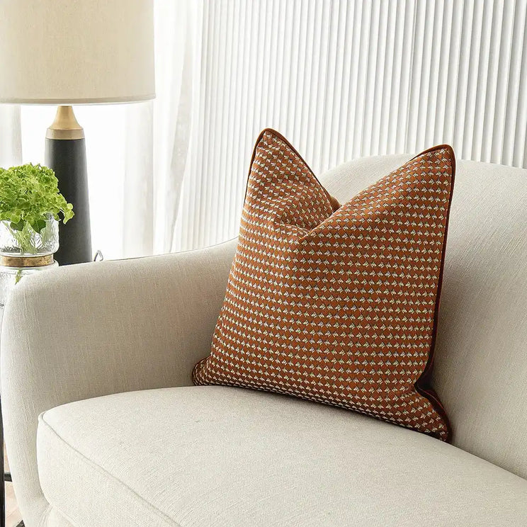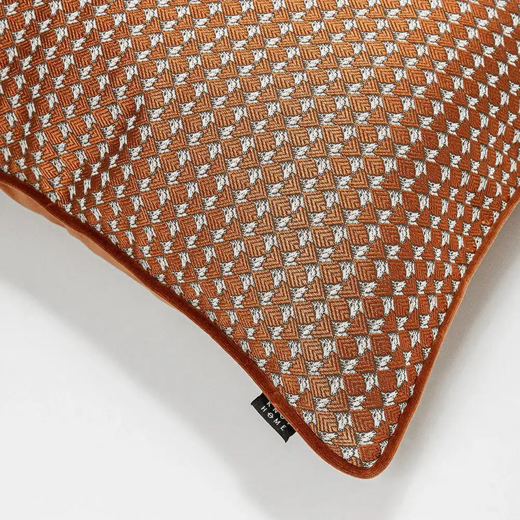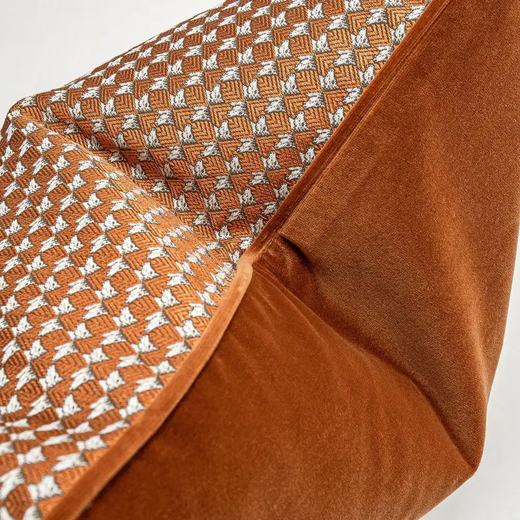 This richly coloured cushion will create an upscale aesthetic in your home. The grid pattern cushion comes in dark orange with white accents, and has a plush velvet back to enhance the luxury feel.