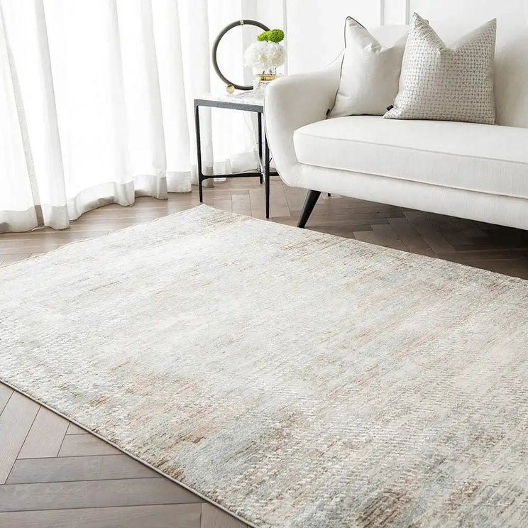With a faded pattern in a blend of cream, grey and orange, this abstract carpet takes neutral tones to the next level.