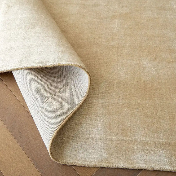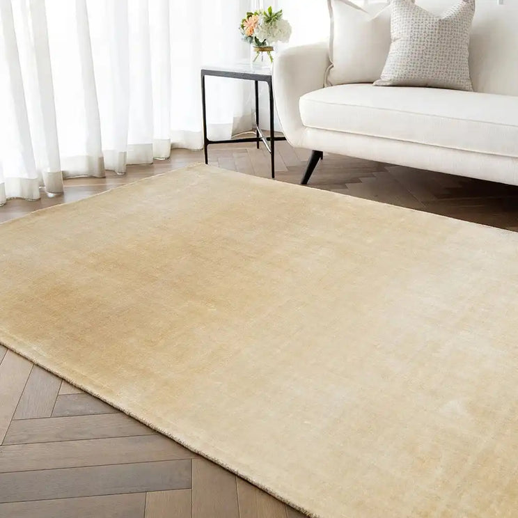 In shades of gold and beige, this lustrous rug has a shimmering ombré effect that will make your living space shine.