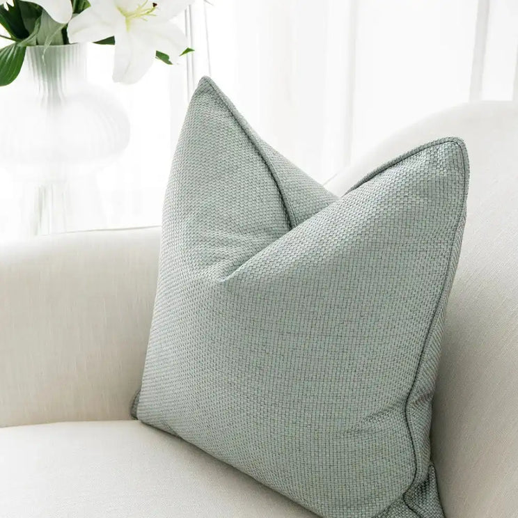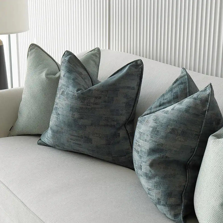 Our Aliza cushion bundle will add a pop of colour to your living space. It includes two teal cushions with a paintbrush-effect pattern, and two pale green cushions in cotton jacquard.