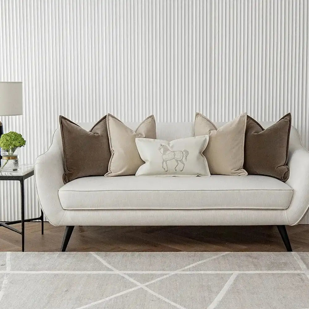 Our Nadine cushion bundle is a luxurious choice. It includes two beige velvet cushions, two brown velvet cushions and a faux leather accent cushion with a horse motif for a chic final flourish.