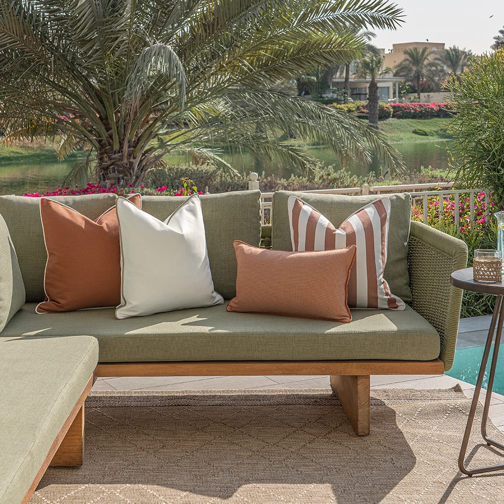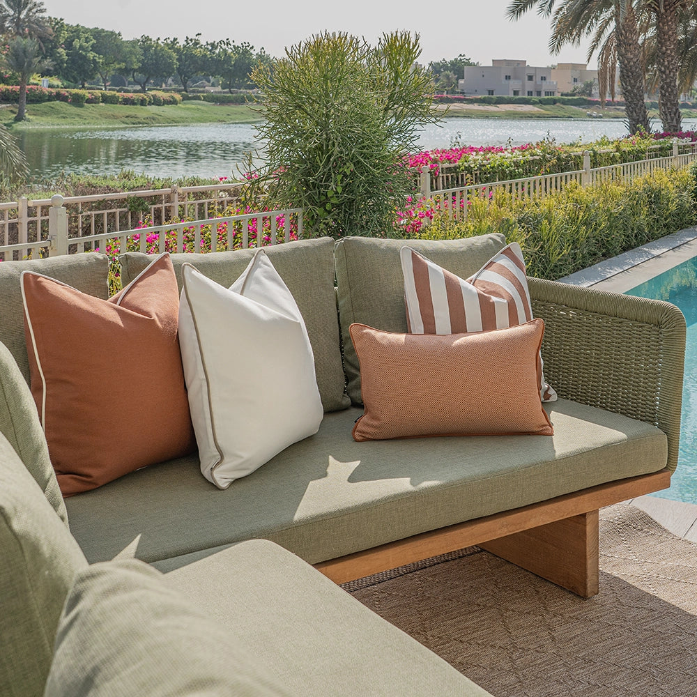 Weather-resistant, fibre-filled cushions for comfort that elevates any outdoor space