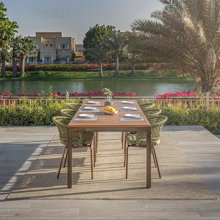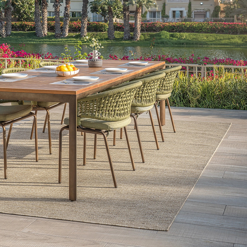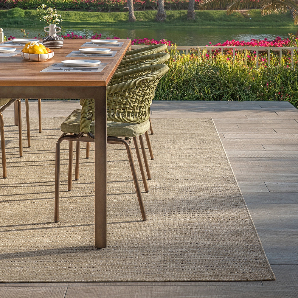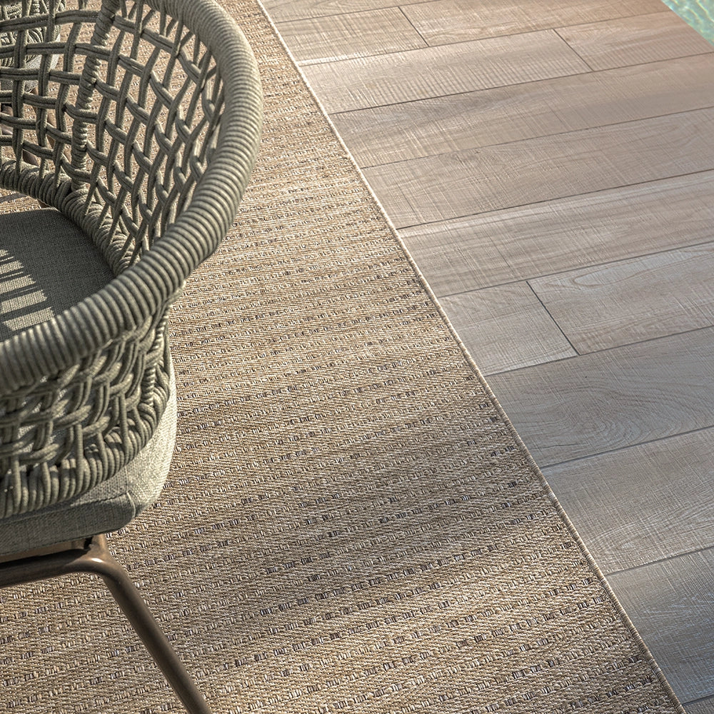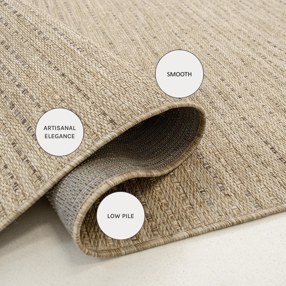 Design: Linear textured weave with subtle striations, flatwoven for strength and smooth indoor–outdoor versatility.