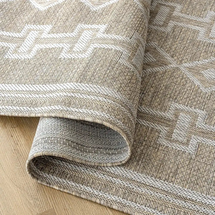 In golden brown and white, this patterned carpet has a rustic aesthetic. It's the perfect finishing touch for a modern interior.
