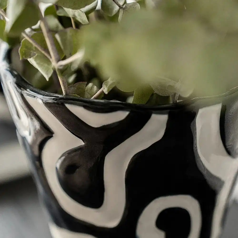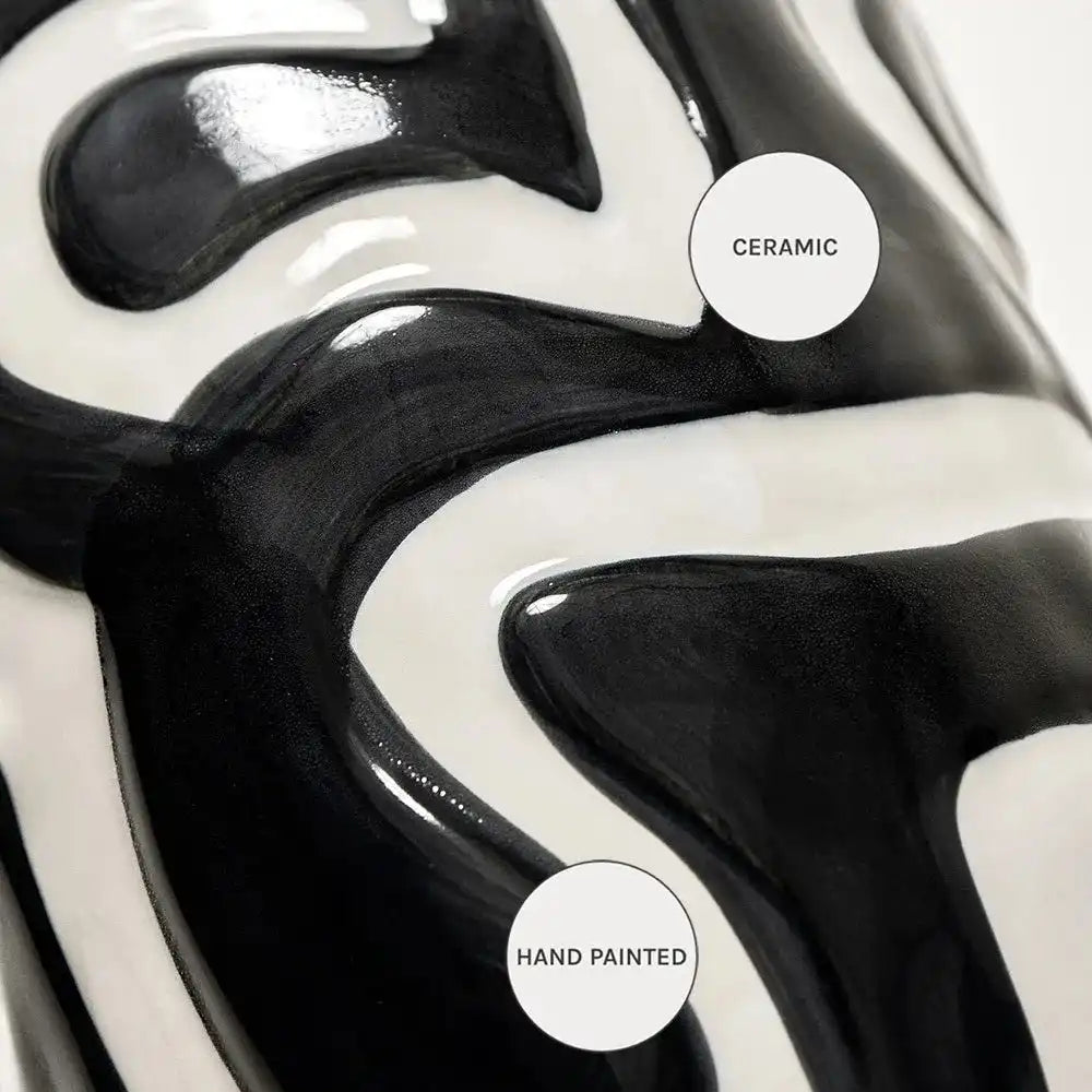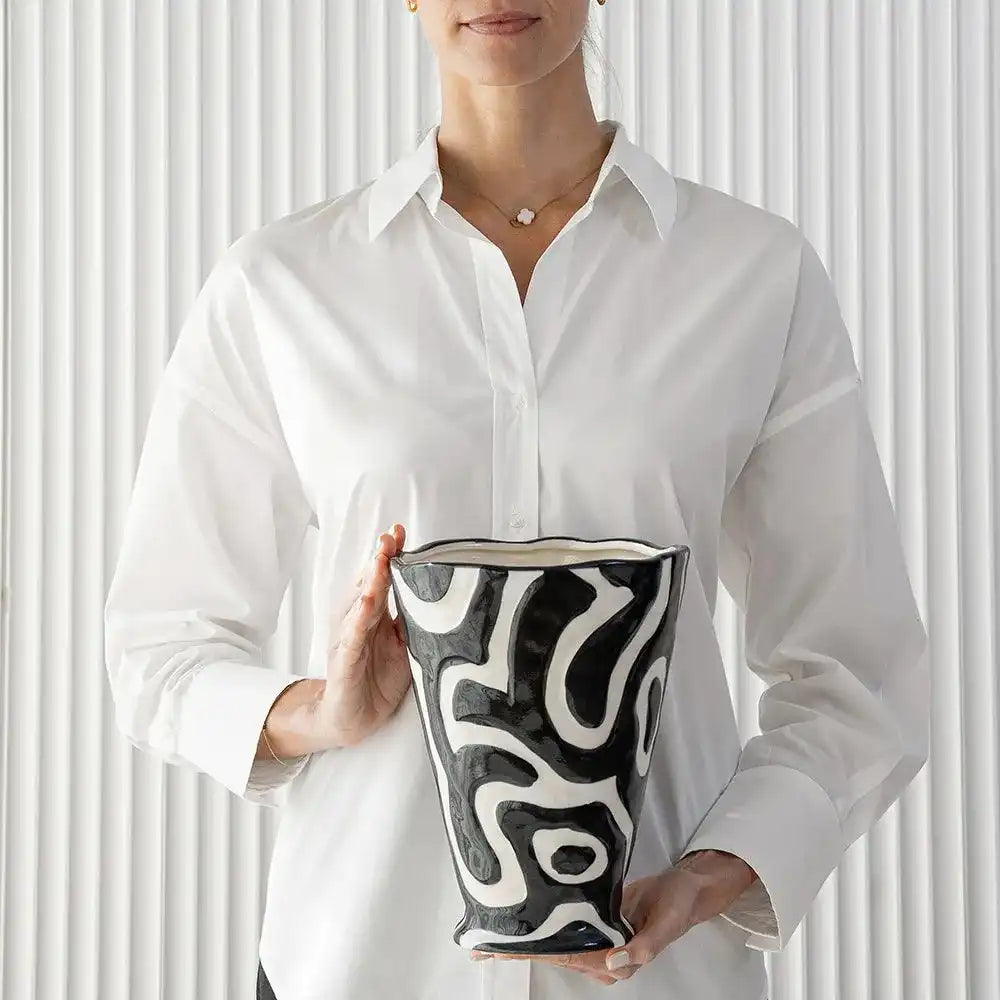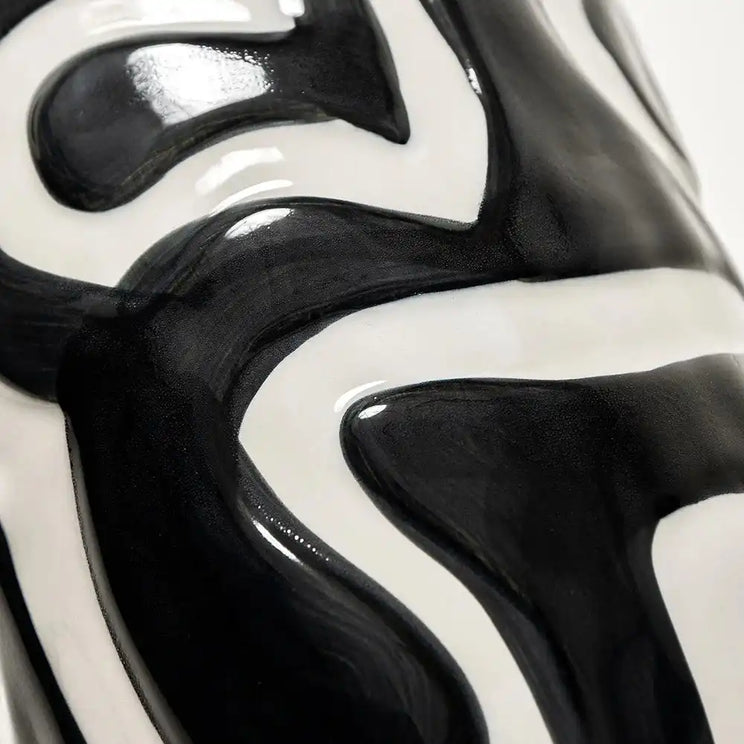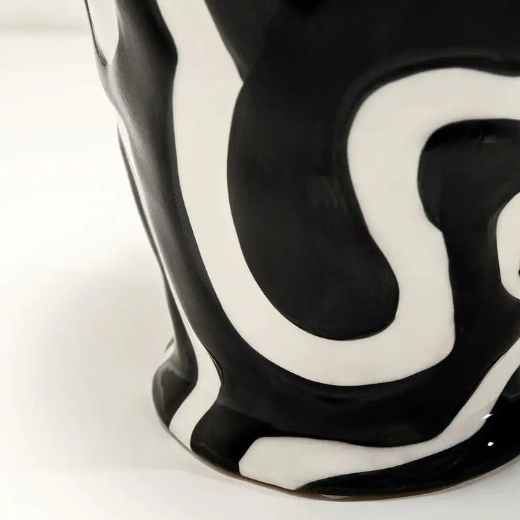This glossy black and white vase puts a new twist on a traditional silhouette. A textured surface and irregular rim give the ceramic vase an artisan feel – perfect for bouquets of seasonal flowers.