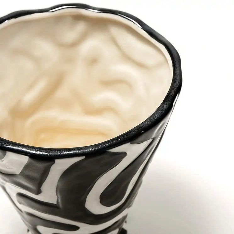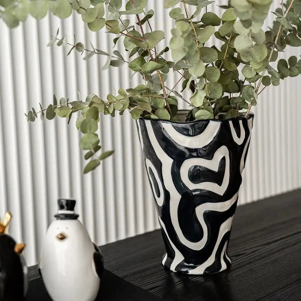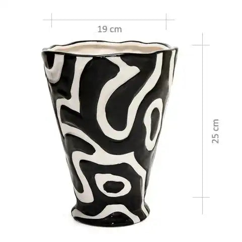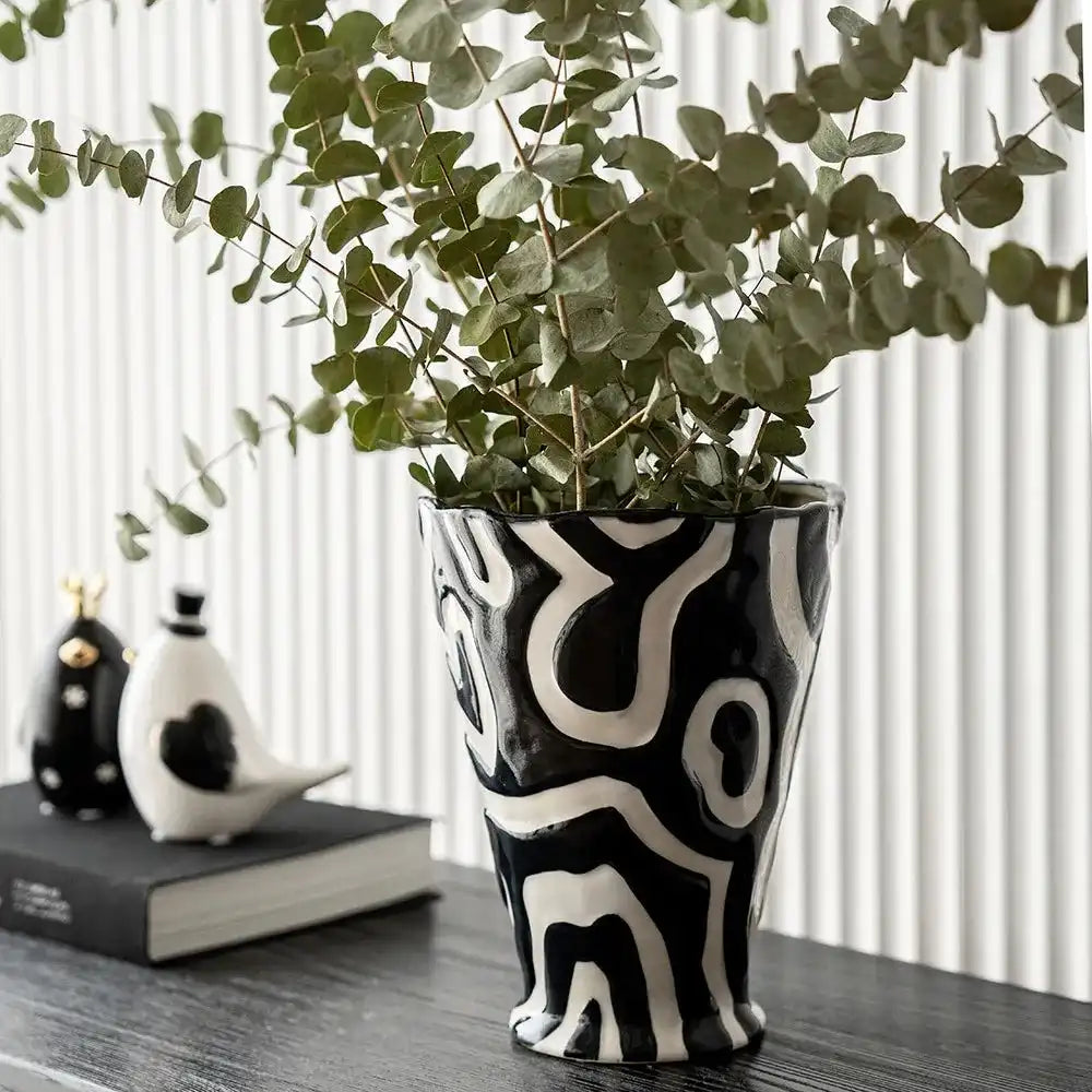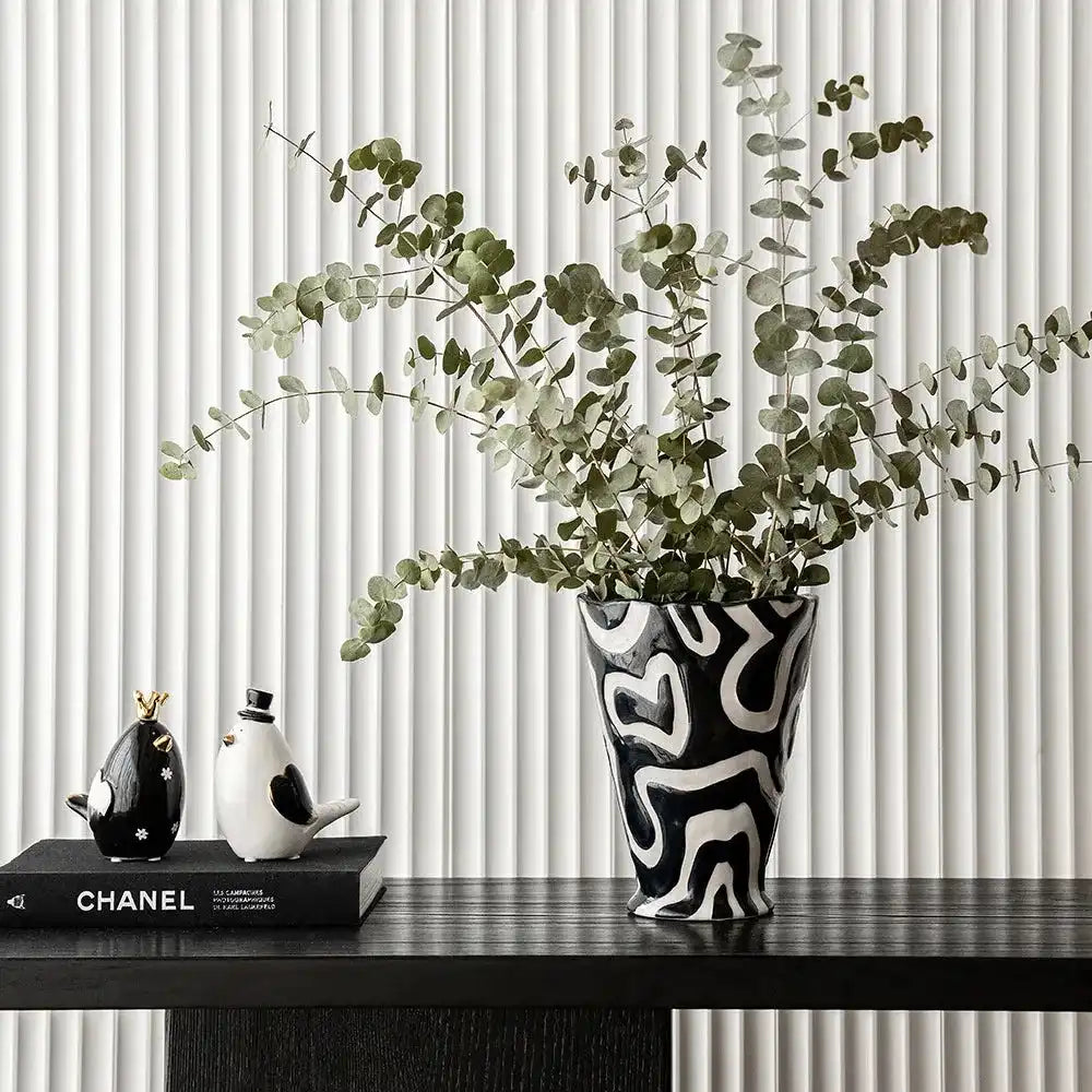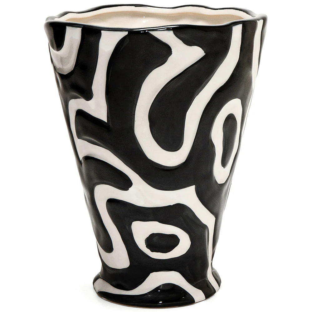 This glossy black and white vase puts a new twist on a traditional silhouette. A textured surface and irregular rim give the ceramic vase an artisan feel – perfect for bouquets of seasonal flowers.