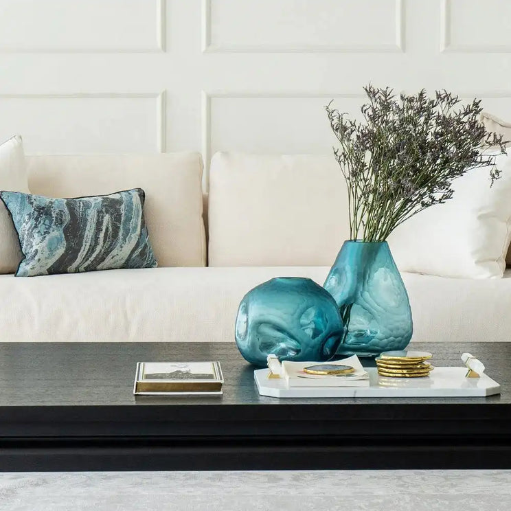 This turquoise bundle includes two textured glass vases with organic silhouettes that look a little like melting ice. Together, they'll add a subtle dash of colour to your interior.