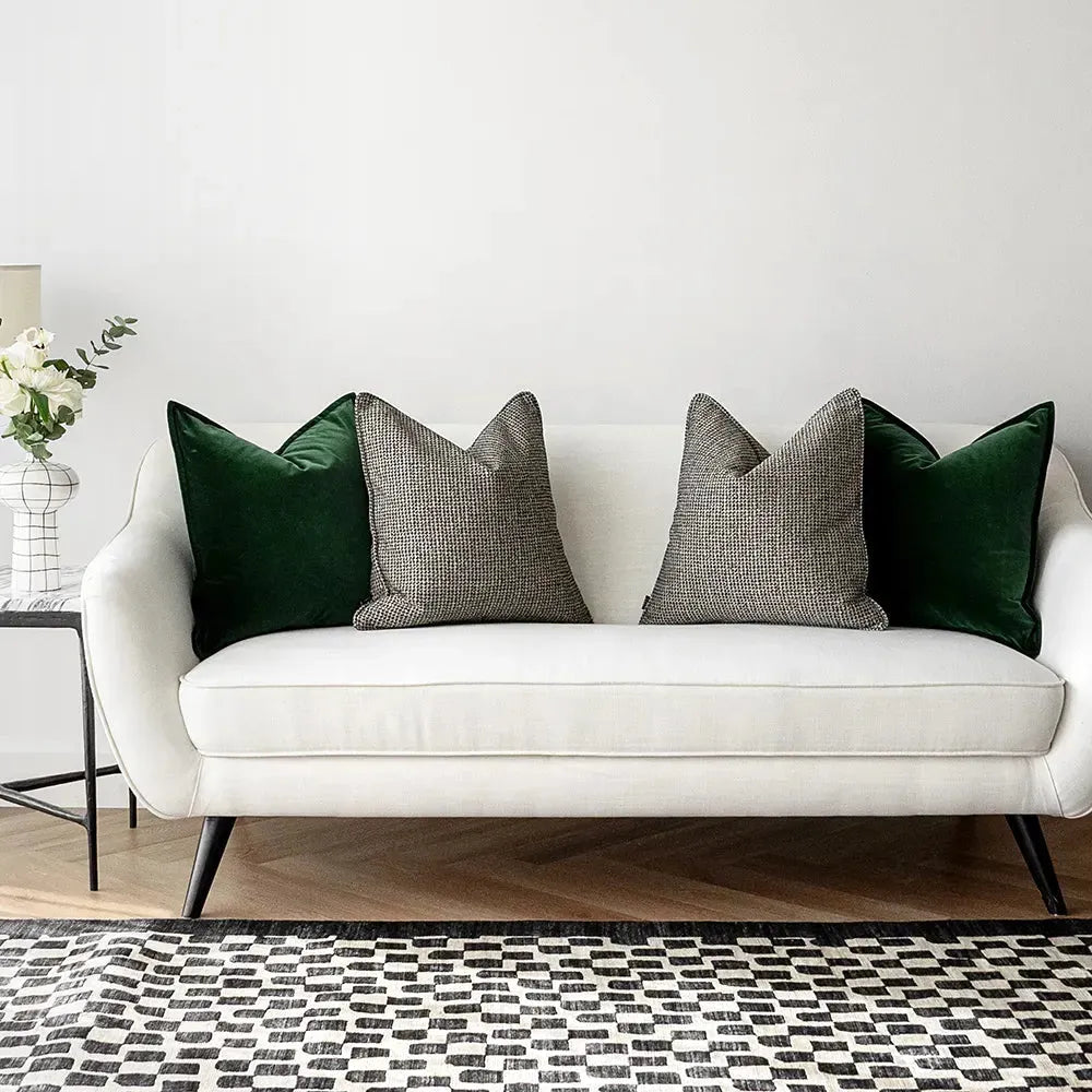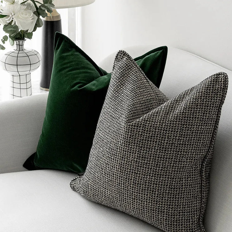 Add a chic twist to your interior with this four-piece cushion set. The designer bundle includes two rich green velvet cushions and two dogtooth check cushions – perfect for any style of sofa.