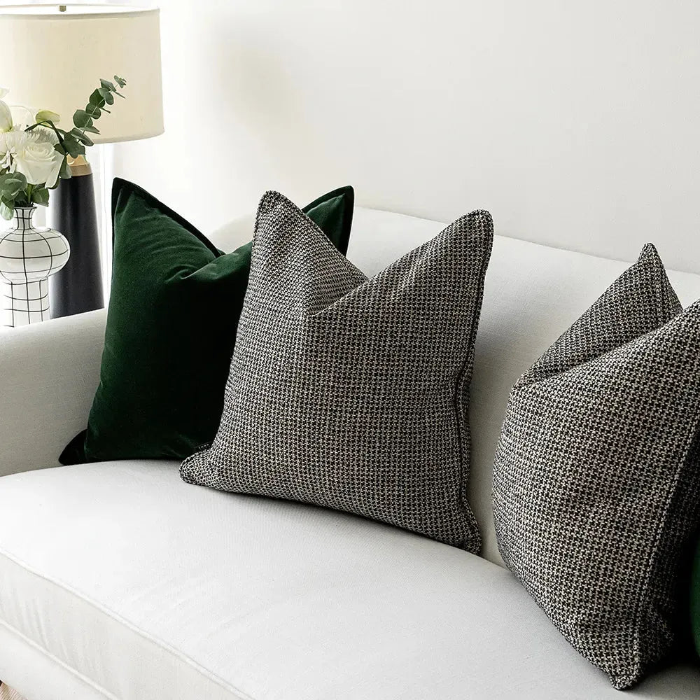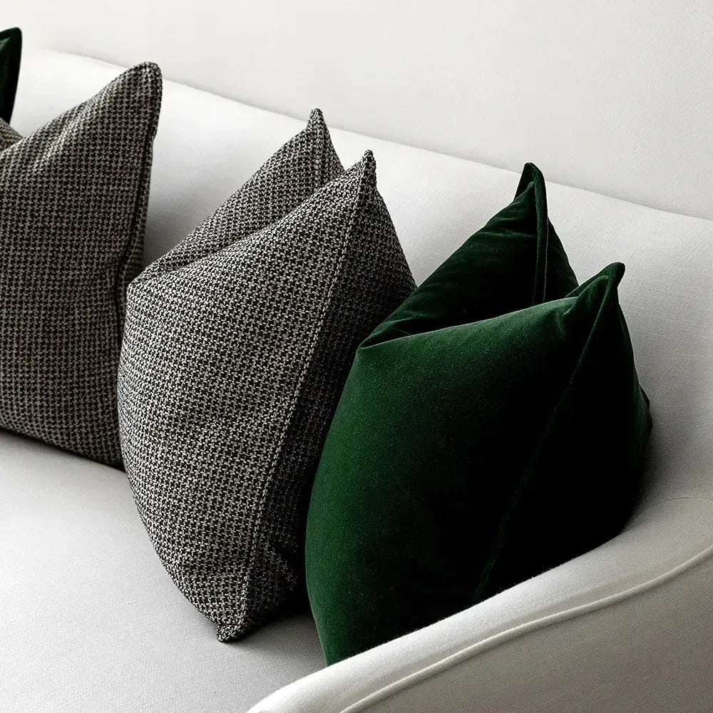 Design: Two green velvet cushions and two dogtooth jacquard cushions