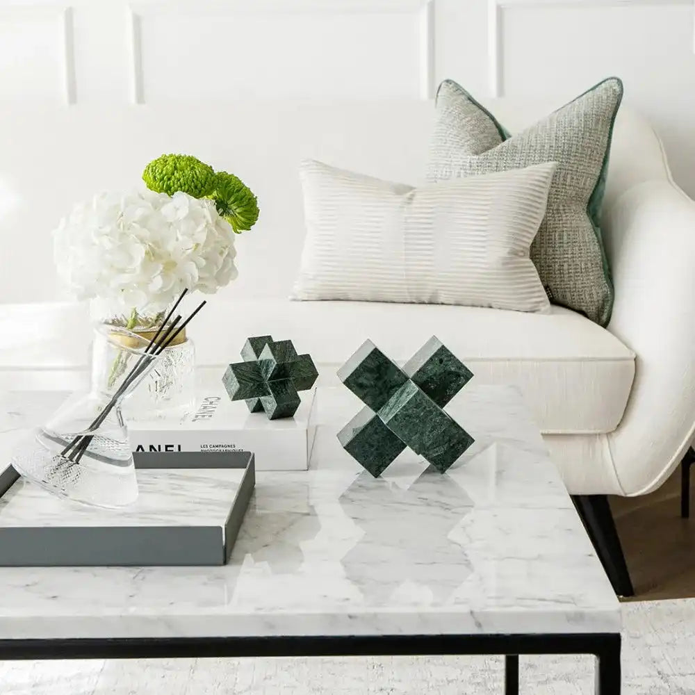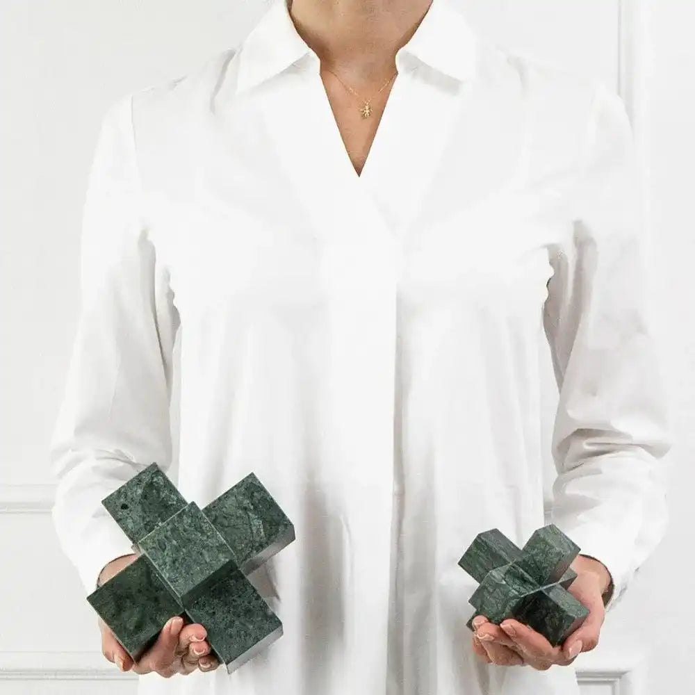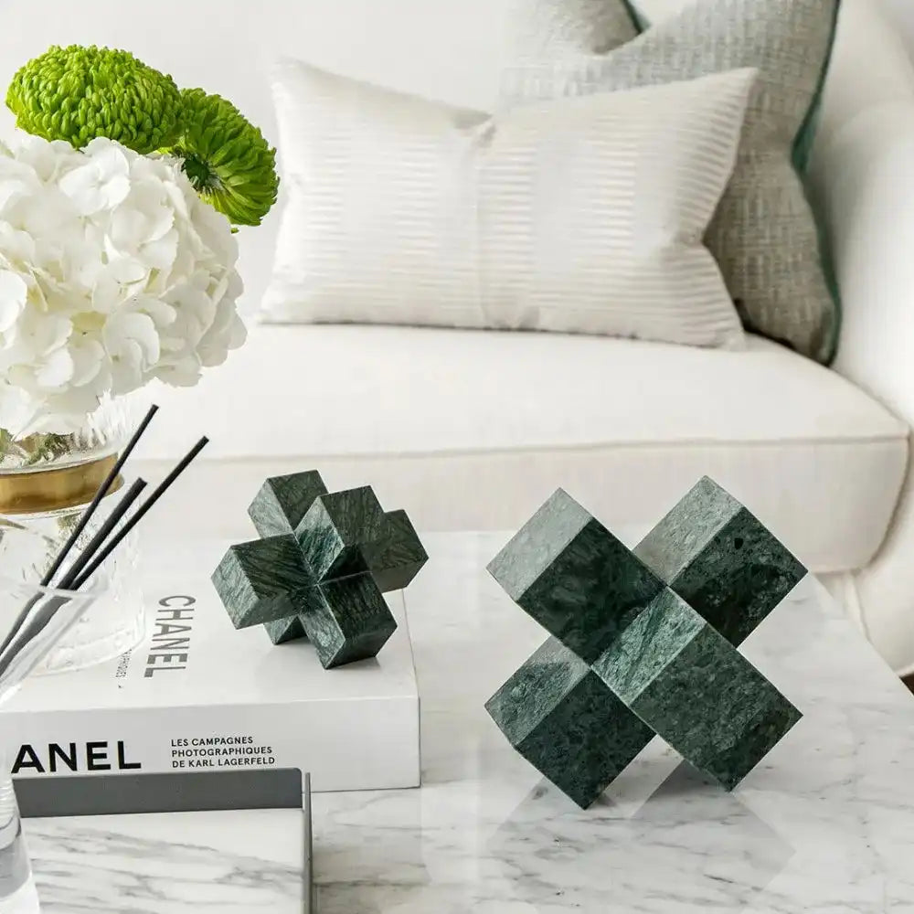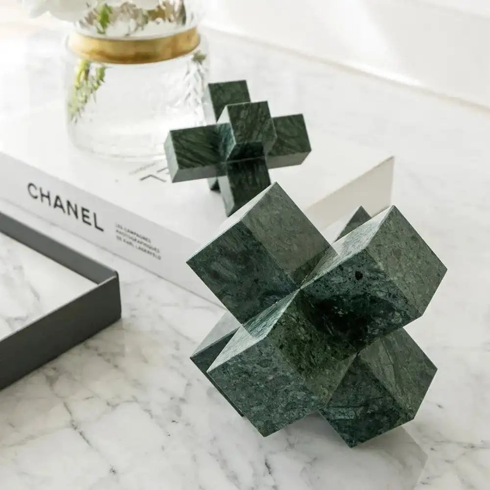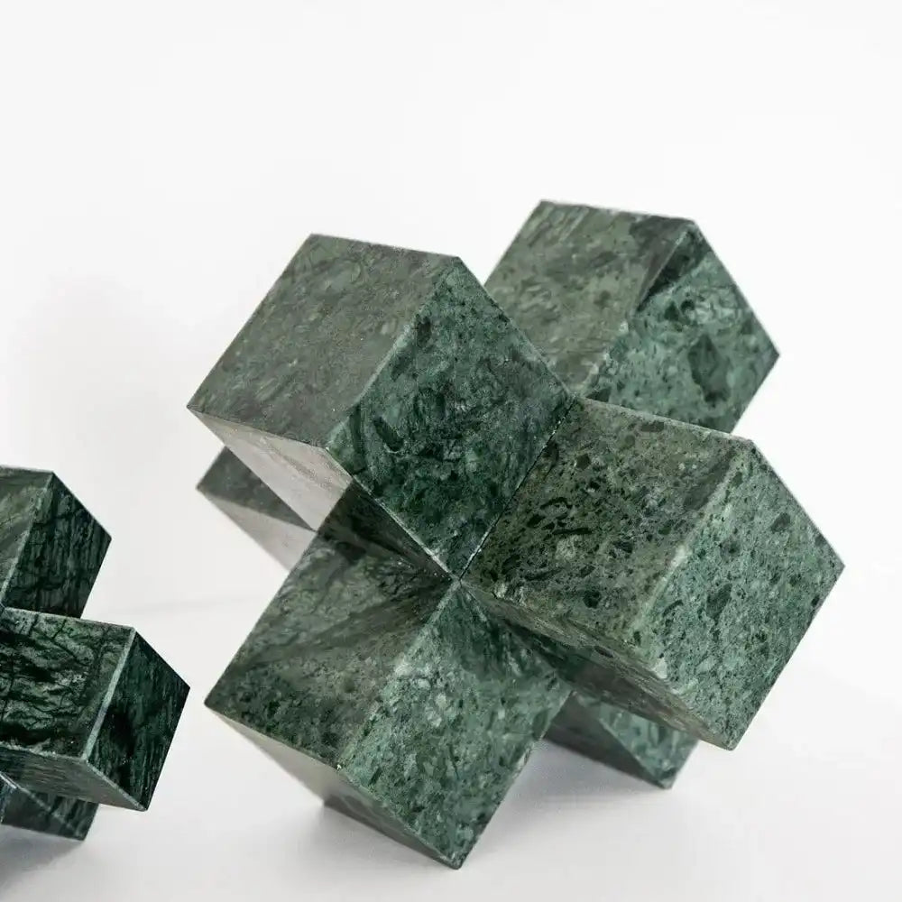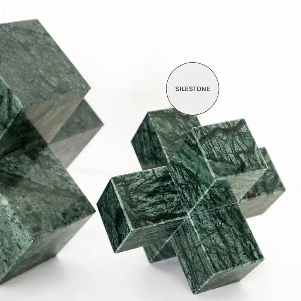 In silestone for a natural feel, this sculpture set includes two paperweights with a modern multi-cube design to make an eye-catching addition to your living room or office.