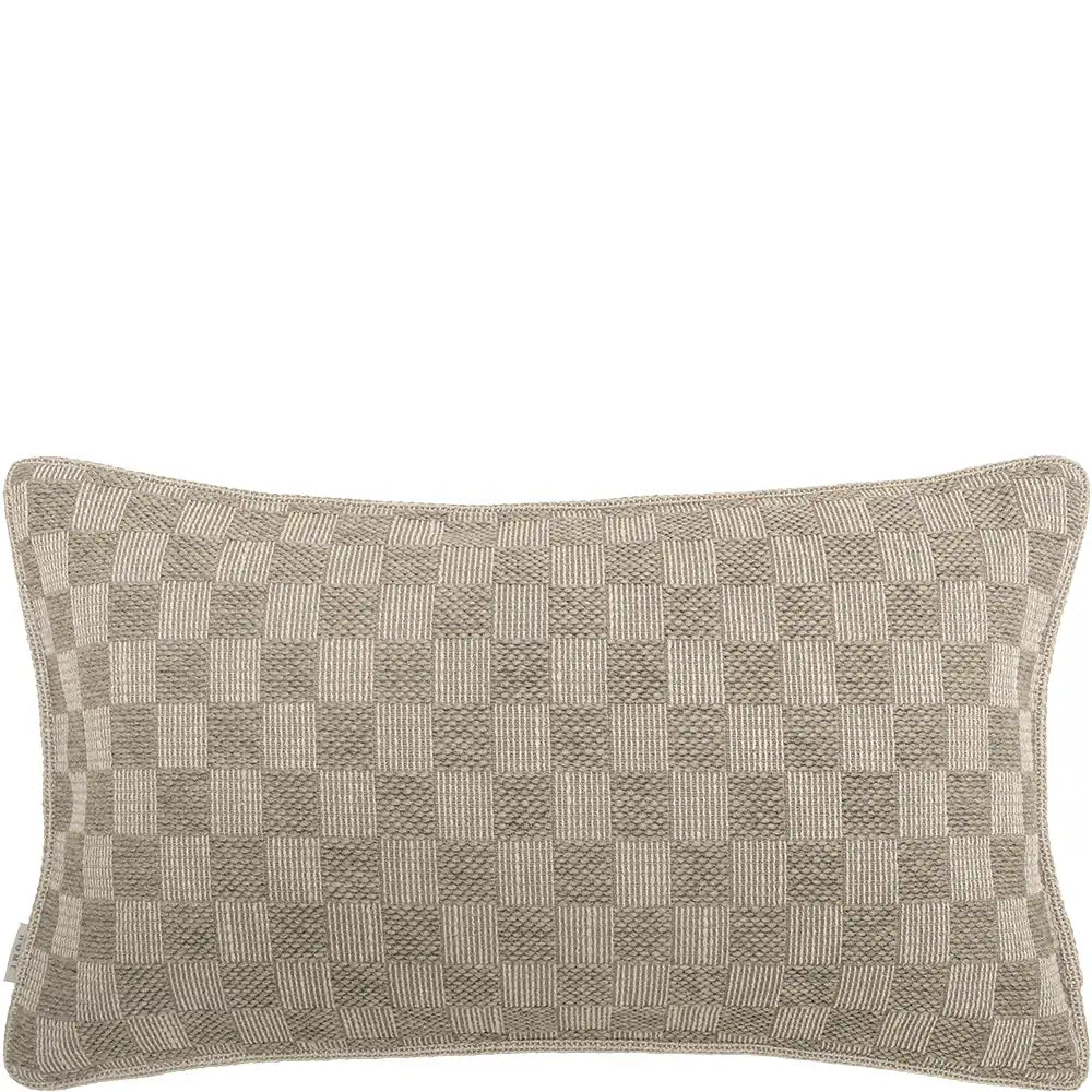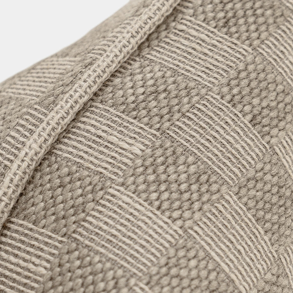 A beautifully textured cushion featuring a refined two-tone weave that feels both structured and soft. Its muted, earthy tone grounds the space while the elevated craftsmanship adds quiet sophistication.