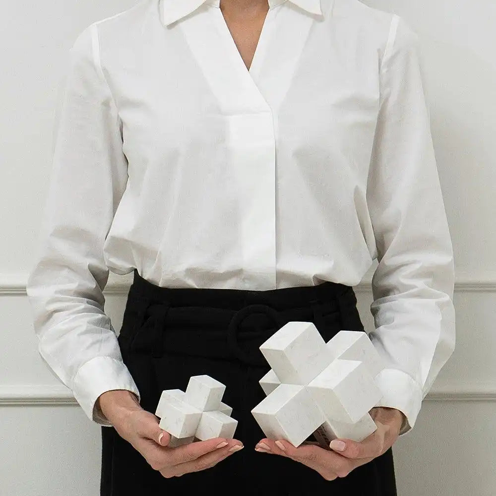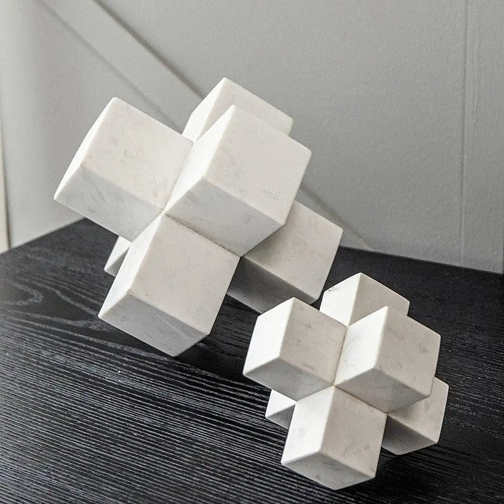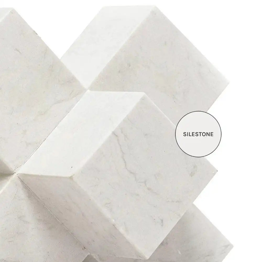This best-selling bundle includes two modern paperweights with a multi-cube design. In white and grey silestone, they make a handy office accessory, or a decorative sculpture in their own right.